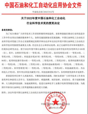 Feng Ziming& Teachers from College of Mechanical & Electrical Engineering Won Science and Technology Invention Award in Petroleum and Chemical Industry Recently, China National Association for Automation in Petroleum and Chemical Industry announced the winners for the 2022 China Petroleum and Chemical Automation Industry Science and Technology Awards. The project of "Optimization and Energy-saving Technology for Rod-pumped Wells and Its Scale Application", completed by Professor Feng Ziming, Professor Xiang Jiawei, and Associate Professor Huan...2023-03-02
