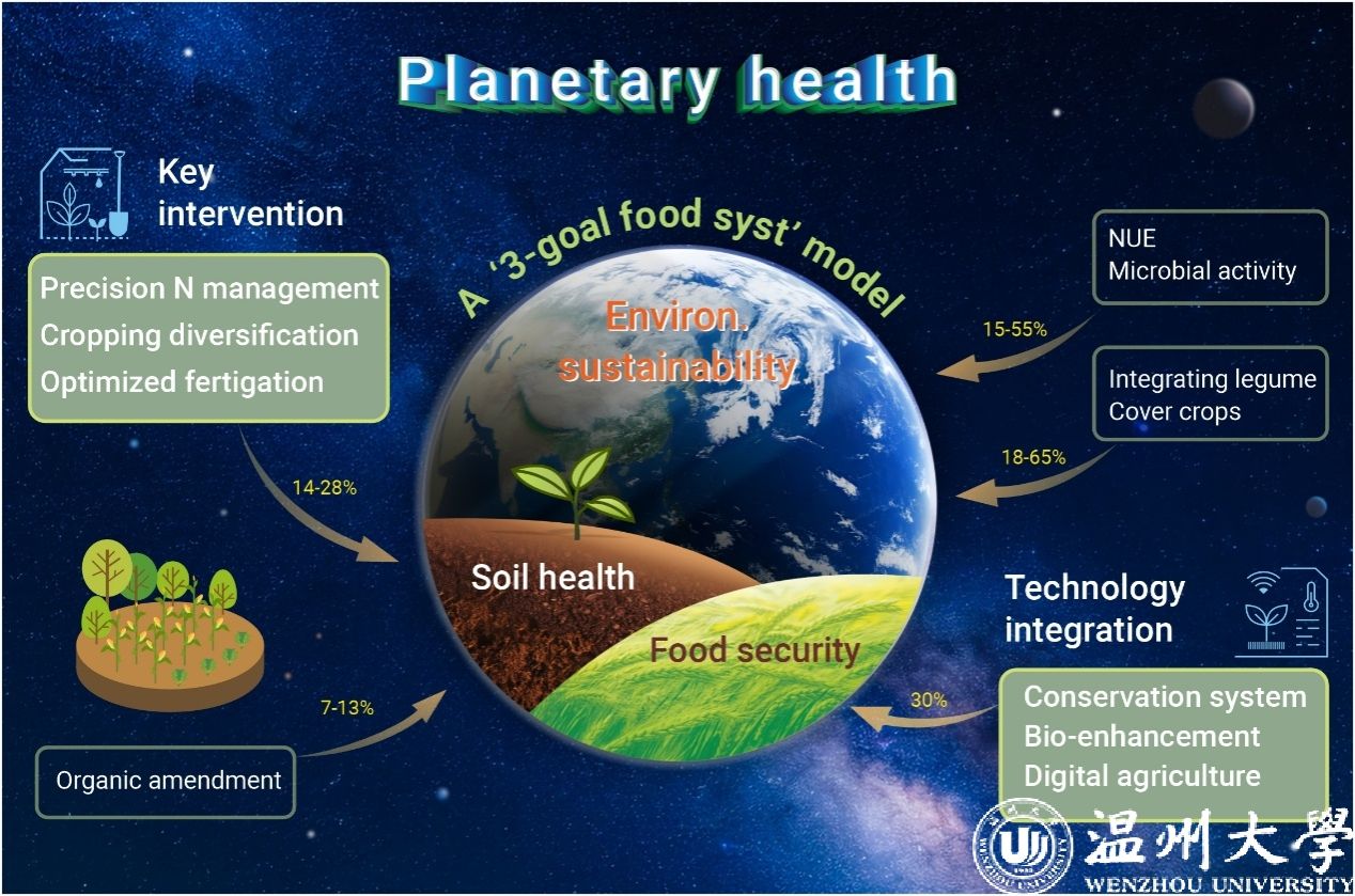 近日,小宝影院 生环学院生态学学科团队赵敏/甘延太/王丽在Cell Press综合性期刊Innovation发表题为“Integrated strategies for enhancing agrifood productivity, lowering greenhouse gas emissions, and improving soil health”的学术论文。在气候变化背景下,实现粮食安全、生态环境可持续与土壤健康协同发展,是全球生态环境面临的核心挑战。传统粮食生产模式过度追求产能而忽视生态韧性,加剧了土壤退化、温室气体排放和资源低效利用。研究基于对全球39,162项研究的二次荟萃分析系统评估了全球现代生态创新技术在粮食安全、低碳减排及土壤修复中的作用,揭示“粮食安全-环境友好-土壤健康”协同优化的关键驱动机制,建立了实现“增产、减排、土壤修复”的丰碳壤三维耦衡系统(FCS-3D),为构建高产能、可持续、强韧性的生态新范式奠定了基础,为发展气候智能型韧性生态农业给予策略支撑,为实现联合国可持续发展目标提供了转型路径,规模化实施该系统将重塑全球农业生态新格局。