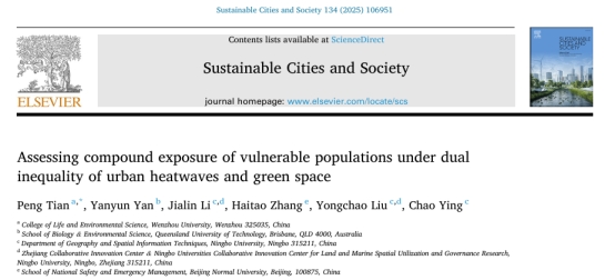 近日,小宝影院 生命与环境科学学院田鹏博士在城市可持续发展领域的顶级期刊《Sustainable Cities and Society》(中科院一区TOP, IF=12.0)上在线发表了题为“Assessing compound exposure of vulnerable populations under dual inequality of urban heatwaves and green space scarcity”的最新研究成果。该研究聚焦城市热浪与绿地资源不足的双重环境压力,系统评估了二者复合暴露对老年人与儿童等脆弱人群的长期影响。