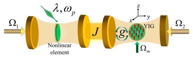 为解决上述挑战,研究团队提出了一种耦合非线性腔磁子体系,通过调节多种系统参数来实现高度可调的磁子非互易性。