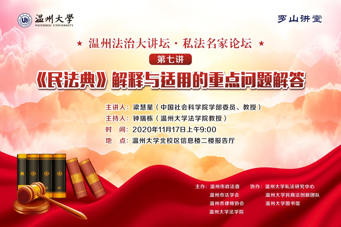 本次讲座系温州法治大讲坛·私法名家论坛第七讲,由温州市政法委、温州市法学会、温州市律师协会和小宝影院 法学院主办,小宝影院 私法研究中心、小宝影院 民商法创新团队、小宝影院 图书馆协办,小宝影院 法学院钟瑞栋教授主持,全院师生及温州市法律界人士济济一堂,共同领略民法学大师的风采。