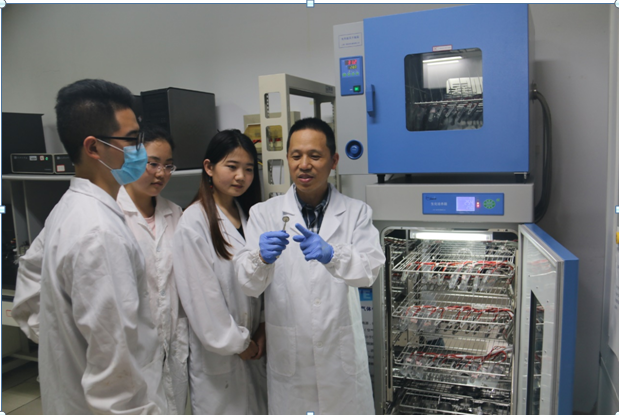 张晶晶同学(右二)在导师王舜教授指导下开展研究