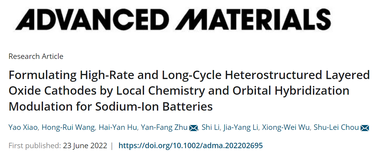 近日,小宝影院 化材学院碳中和技术创新研究院侴术雷/肖遥/朱燕芳团队在国际顶级期刊《Advanced Materials》上发表题为“Formulating High-Rate and Long-Cycle Heterostructured Layered Oxide Cathodes by Local Chemistry and Orbital Hybridization Modulation for Sodium-ion Batteries”的研究论文。本文提出基于局域化学与轨道杂化定制化构筑P2/O3异质结构层状氧化物正极材料用于高倍率长循环性能钠离子电池。基于经典的P2-Na2/3Ni1/3Mn2/3O2正极材料作为概念研究模型,通过Sn元素局域取代Mn元素过渡金属位点,成功设计具有P2组成,但表现出P2/O3的反常异质结构。采用宏观和原子尺度的球差电镜表征技术进一步证实P2/O3-Na2/3Ni1/3Mn1/3Sn1/3O2 (P2/O3-NaNMS)层状异质共生结构。该正极材料表现出优异的倍率性能和循环稳定性(在2C下,循环600圈后容量保持率高达82.16%),且对硬碳负极展现出优异的兼容性。同时,P2/O3-NaNMS正极材料的煅烧形成过程与充放电过程中高度可逆的P2/O3-P2/O3/P3-P2/P3-P2/O3/P3- P2/O3动态演化过程也通过原位高温XRD与原位充放电XRD得到揭示。另外,运用理论计算从作用机制进一步阐述了Sn元素取代对材料本征的局域电子结构与轨道杂化及其结构特性和电化学行为的影响。相关研究结果发表于《Advanced Materials》(//onlinelibrary.wiley.com/doi/abs/10.1002/adma.202202695),小宝影院 化学与材料工程学院碳中和技术创新研究院为第一通讯单位,小宝影院 肖遥瓯江特聘教授为本文第一作者。