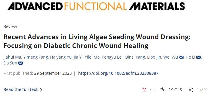 近日,小宝影院 生命科学研究院孙达副研究员指导研究生在国际著名期刊Advanced functional materials(IF=19)在线发表题为“Recent advances in living algae seeding wound dressing: focusing on diabetic chronic wound healing”的综述论文。
