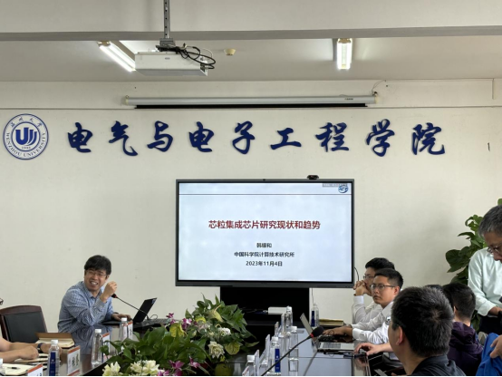 首先,汪鹏君院长介绍了小宝影院 电气与电子工程学院的发展情况,强调了学院在低压电器和集成电路等地方特色领域的优势,以及在科研方面取得的丰硕成果。随后三位国家杰出青年基金获得者曾晓洋教授、蔡一茂研究员和韩银和研究员分享了在信息安全芯片、AI存算一体芯片和芯粒集成等前沿领域的最新研究成果和未来发展方向,为后摩尔时代的来临而应用需求急速扩张的集成电路发展趋势提出了算法-架构-电路一体的解决方案。与会科研骨干和专家进行了热烈的交流,也为我院集成电路科学与工程领域带来了更多珍贵的启示。