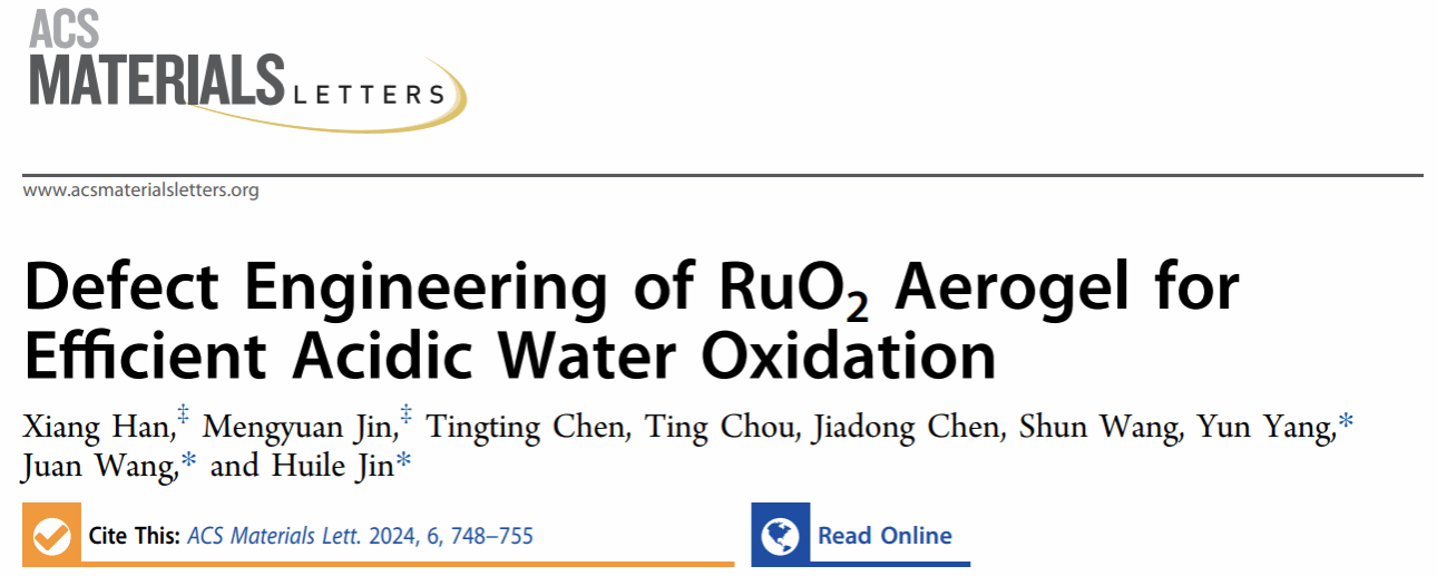 近日,小宝影院 2021级化学(师范)专业本科生韩翔在权威期刊ACS Material Letters上发表题为Defect Engineering of RuO2 Aerogel for Efficient Acidic Water Oxidation(缺陷工程助力RuO2气凝胶用于高效酸性水氧化)的研究论文(指导教师为王娟副教授、金辉乐研究员和杨云研究员)。