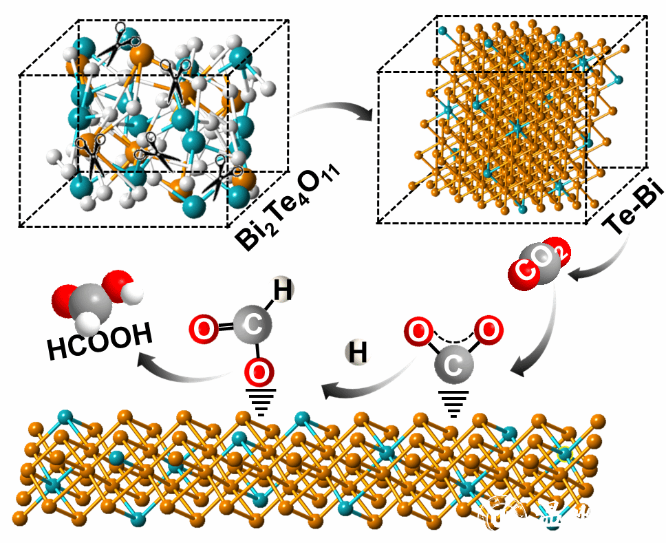 近日,小宝影院 王舜/金辉乐/王娟团队在国际顶级期刊《Angew. Chem. Int. Ed.》发表题为“The Reconstruction of Bi2Te4O11 Nanorods for Efficient and pH-universal Electrochemical CO2 Reduction”的论文。在这项工作中,通过在CO2RR条件下原位重构Bi2Te4O11 NRs来开发Te修饰的Bi纳米棒(Te-Bi NRs)。使用原位X射线衍射(XRD)和原位拉曼光谱对CO2RR过程中Bi2Te4O11 NRs的复杂重构过程进行了全面分析。该分析揭示了三个不同的步骤:Bi2Te4O11的分解、Te/Bi相的形成和Te的溶解。Te-Bi NRs在CO2RR中对甲酸盐表现出非常高的性能,在所有pH条件下(酸性、中性和碱性)都表现出优异的选择性和稳定性。具体而言,在中性、碱性和酸性条件下的流动池反应器中,在300 mA cm-2的高电流密度下分别实现了高达94.3%、96.4%和91.0%的HCOOH法拉第效率,超过了工业要求(>200 mA cm-2)。值得注意的是,在这种高电流密度下,可以稳定运行120多个小时。结合了密度泛函理论(DFT)计算和原位红外光谱(ATR-FTIR)全面揭示了Te的存在会使得Bi位点的呈现出缺电子状态,从而增强*OCHO中间体的吸附强度,同时显著抑制竞争性HER和CO的产生。