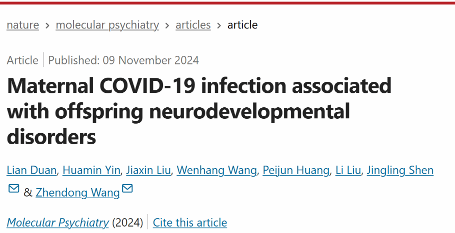 近日,小宝影院 生命与环境科学学院申景岭教授团队在Nature子刊《Molecular Psychiatry》在线发表了一篇题为《Maternal COVID-19 infection associated with offspring neurodevelopmental disorders》的研究论文。该研究聚焦于新冠肺炎通过孕妇影响胎儿大脑发育风险的现象及其潜在机制,这是当前科学研究的热点问题。