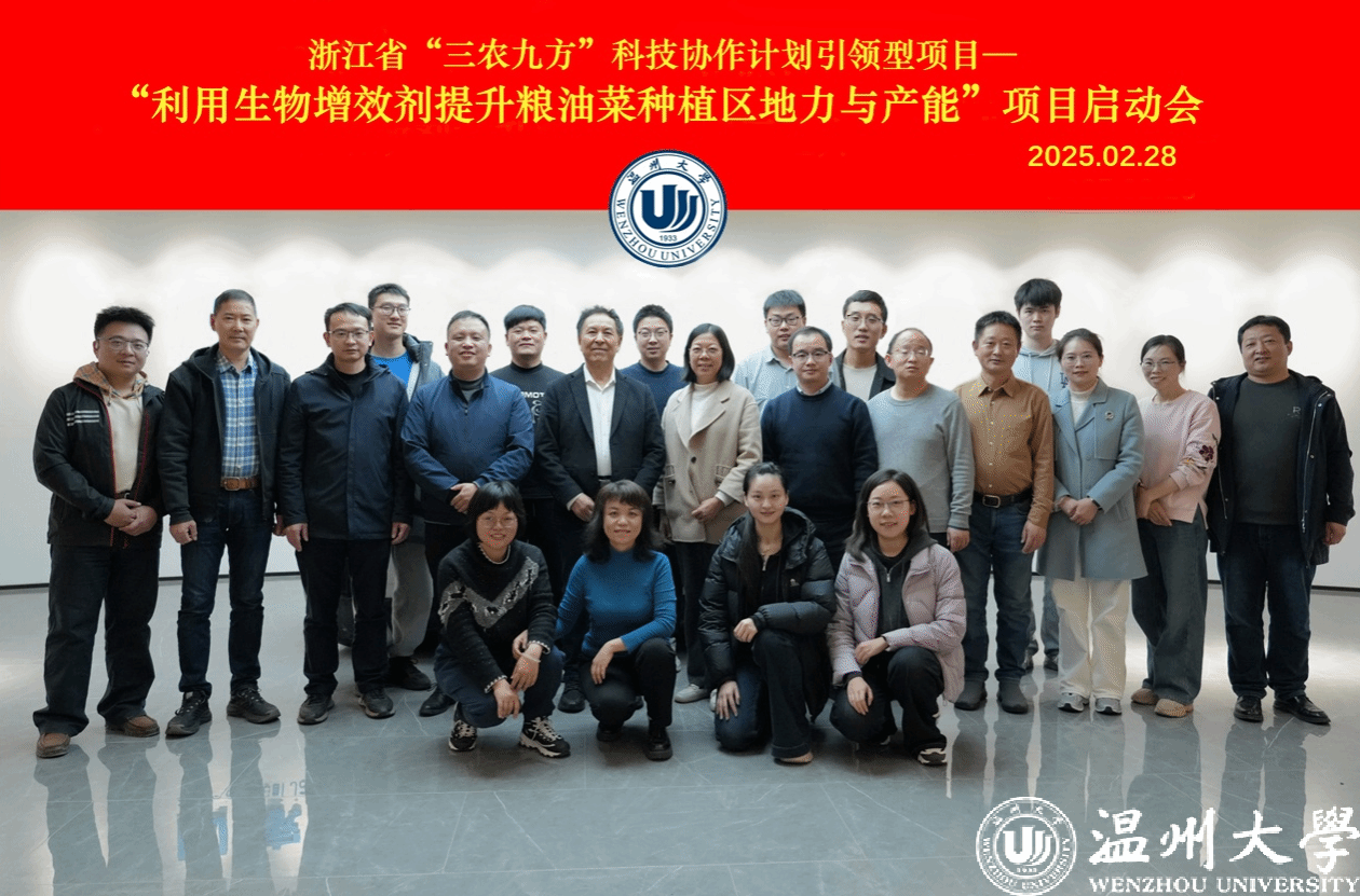 2月28日下午,由小宝影院 承担的浙江省“三农九方”科技计划引领型项目——“利用生物增效剂提升粮油菜种植区地力与产能”项目启动会在小宝影院 召开。该项目由加拿大皇家科学院院士、小宝影院 甘延太教授主持,项目于2025年1月获得立项,小宝影院 牵头,联合浙江大学、宁波大学、浙江省耕地质量与肥料管理总站、浙江省农业科学院、温州市植物保护与土壤肥料站、温州市神鹿种业共同承担,宁波海通时代农业有限公司、平阳县农业局、瑞安市马屿镇农业农村办公室等多家单位也参与项目实施。项目组成员、项目牵头单位相关领导30余人参加会议。