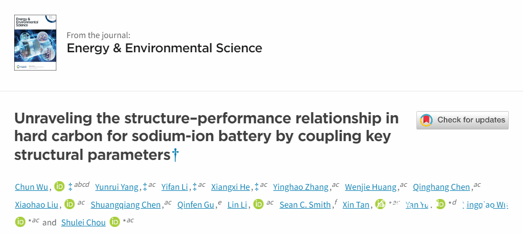 此项工作以Unraveling Structure-performance Relationship in Hard Carbon for Sodium-ion Battery by Coupling Key Structural Parameters为题发表在国际著名期刊Energy & Environmental Science上,小宝影院 作为第一单位,侴术雷教授,谭歆教授,余彦教授,吴星樵老师为通讯作者。该研究工作由博士后吴春、2024届硕士毕业生杨云锐、2023级硕士研究生黎一凡、上海大学/小宝影院 联培博士何祥喜完成。研究工作得到了国家自然科学基金,中国高端外国专家招聘计划,国家重点浙江省自然科学基金中国研发计划项目,安徽省科技计划项目,重点浙江省研发计划项目,温州自然科学基金等资助。