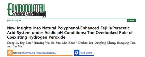 近日,小宝影院 生命与环境科学学院赵敏教授团队(共同通讯)、哈尔滨工业大学马军院士团队和华侨大学邹景教授团队合作,在国际著名期刊《Environmental Science & Technology》上在线发表了一篇题为《New Insights into Natural Polyphenol-Enhanced Fe(III)/Peracetic Acid System under Acidic pH Conditions: The Overlooked Role of Coexisting Hydrogen Peroxide》的研究论文,首次明确了天然多酚强化Fe(III)/PAA(过氧乙酸)体系中长期被忽视的H2O2关键作用。