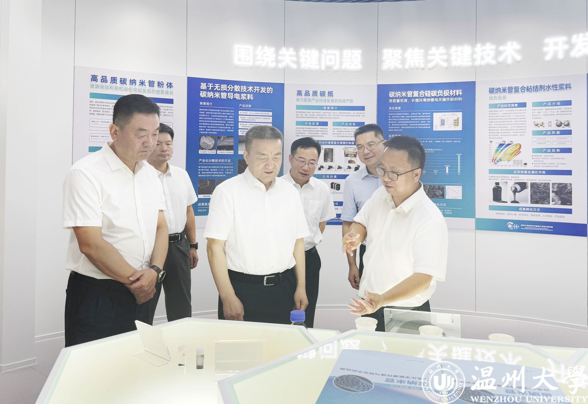 7月24日,浙江省委常委、政法委书记王成国在温州洞头、乐清、瑞安等地宣讲省委十五届七次全会精神,并来小宝影院 碳材料与氢能产业技术研究院(以下简称“碳氢院”)调研指导工作。浙江省委政法委副书记叶新,温州市副市长、市委政法委副书记毛伟平,小宝影院 党委书记钱强,瑞安市委书记李坚,温州市委政法委常务副书记连正坚陪同调研。