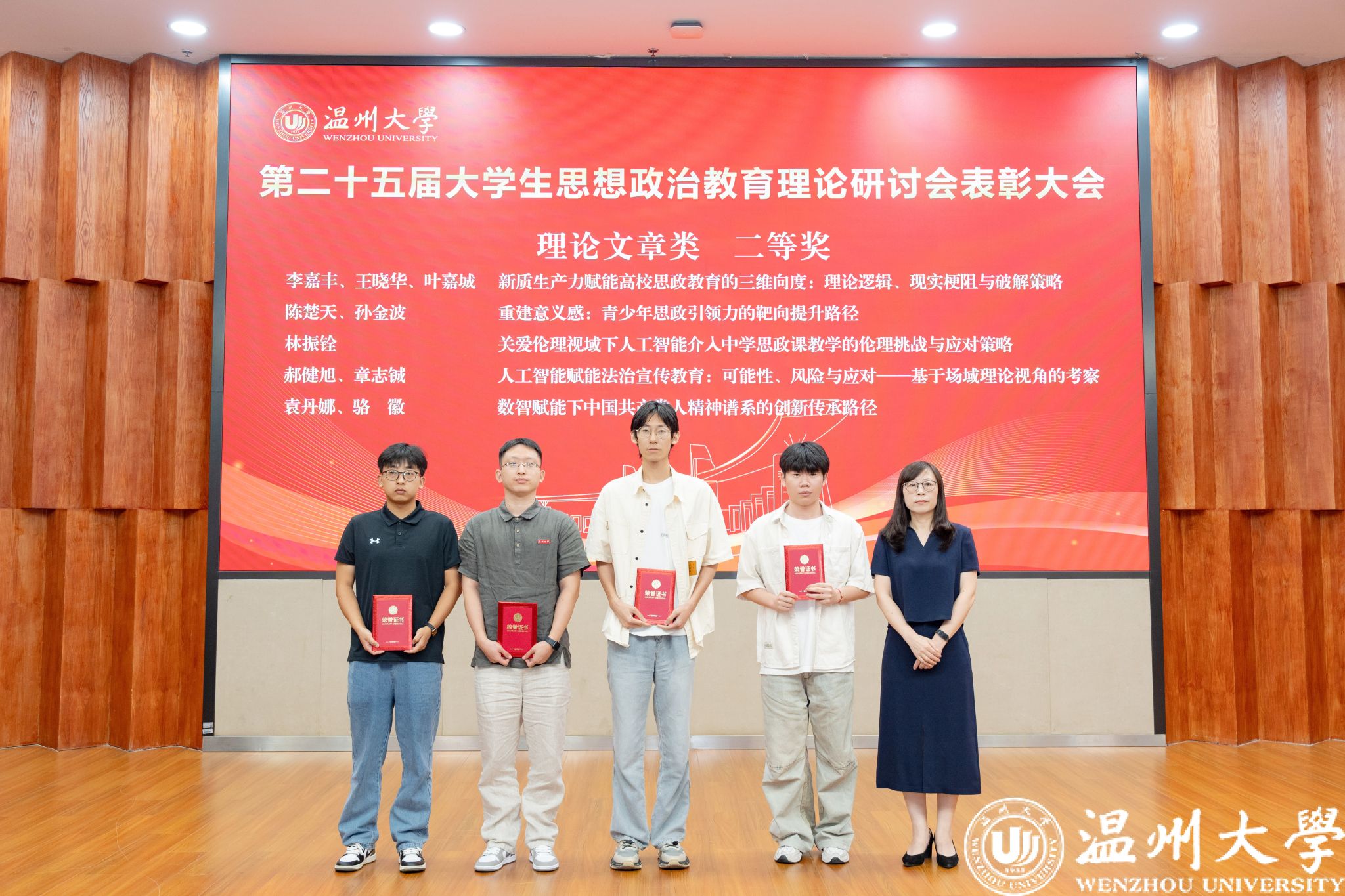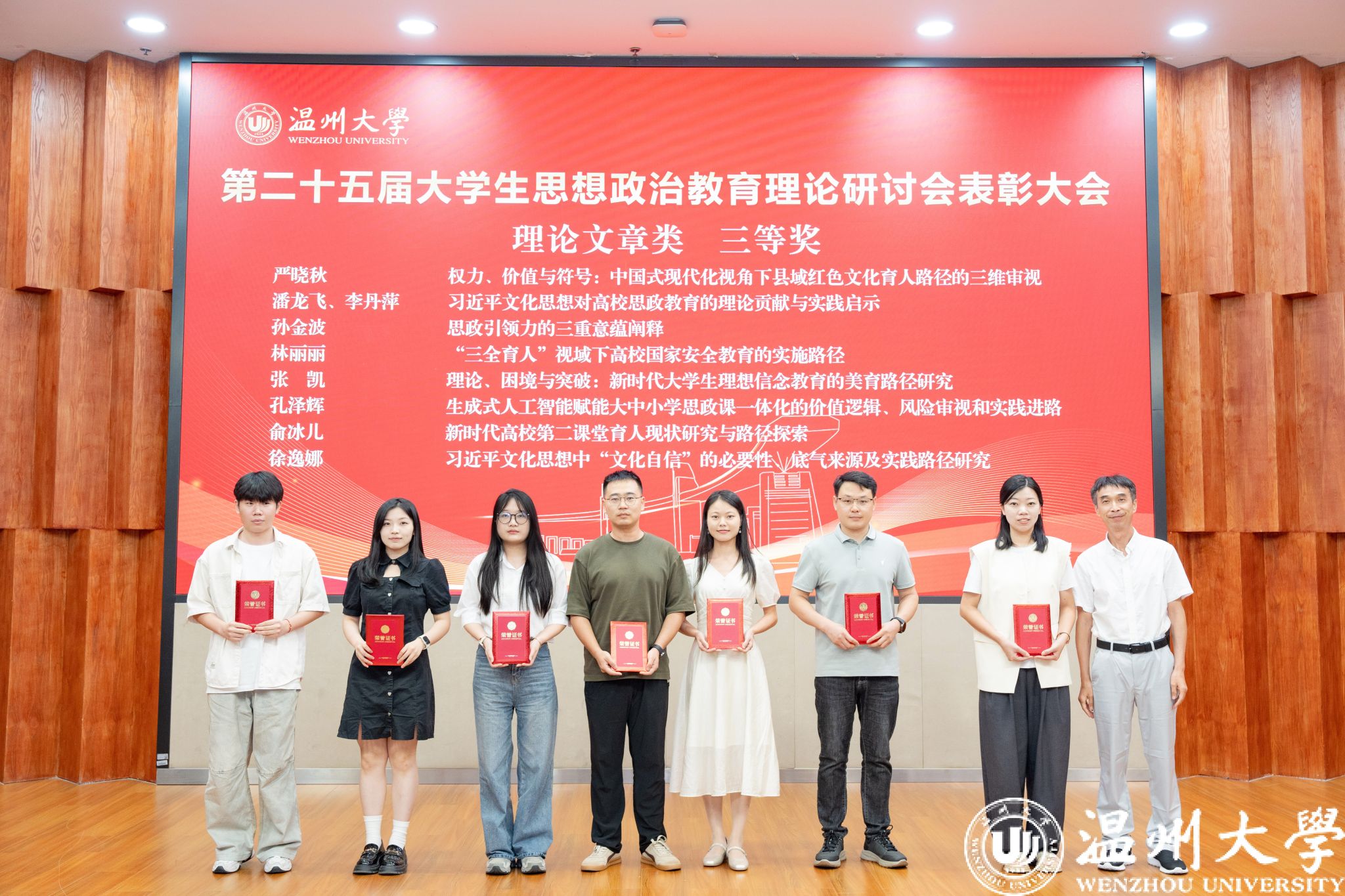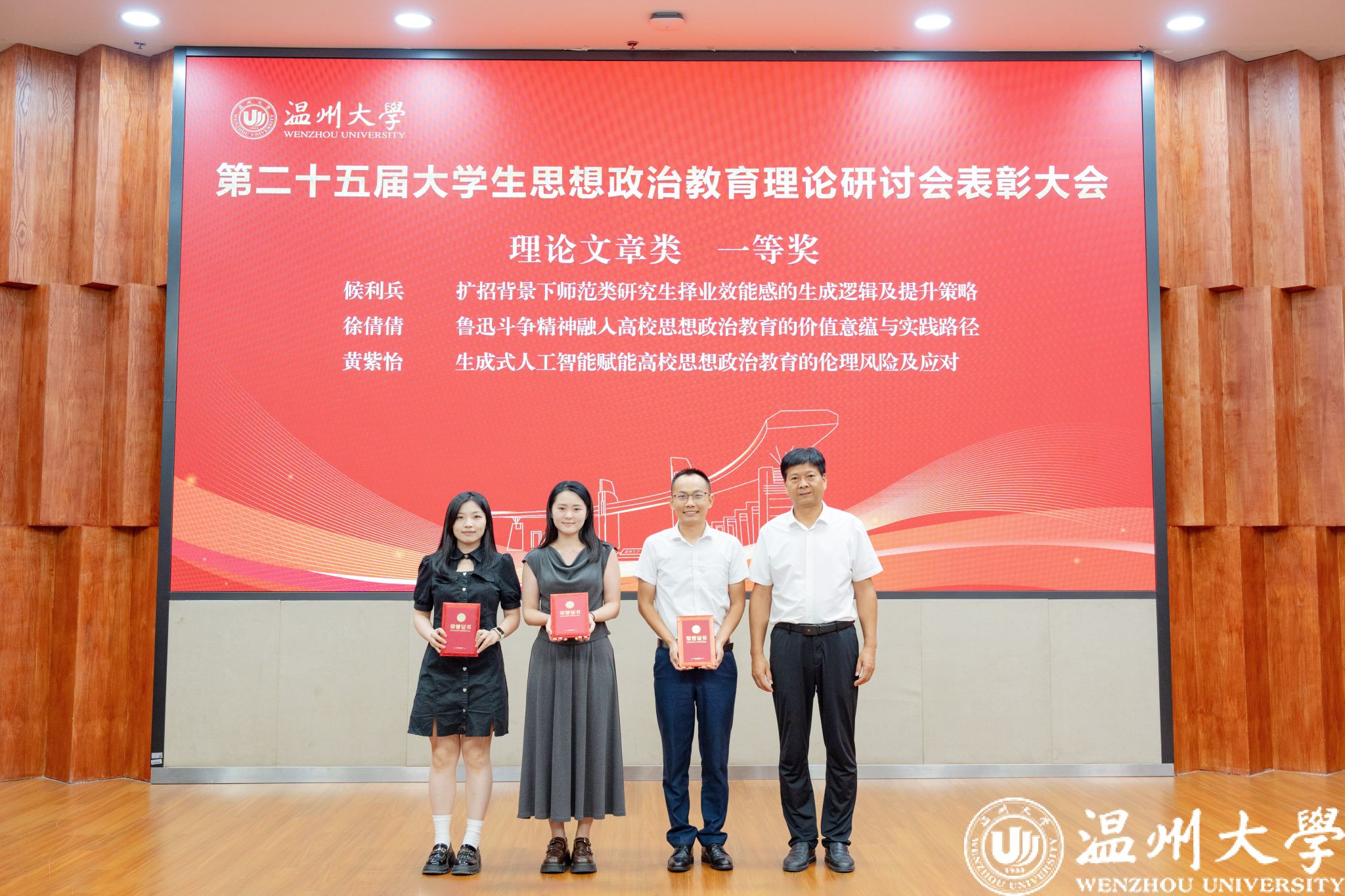 会上宣读并表彰了第二十五届思想政治教育理论研讨会论文获奖者,3位获奖师生代表进行了交流分享。