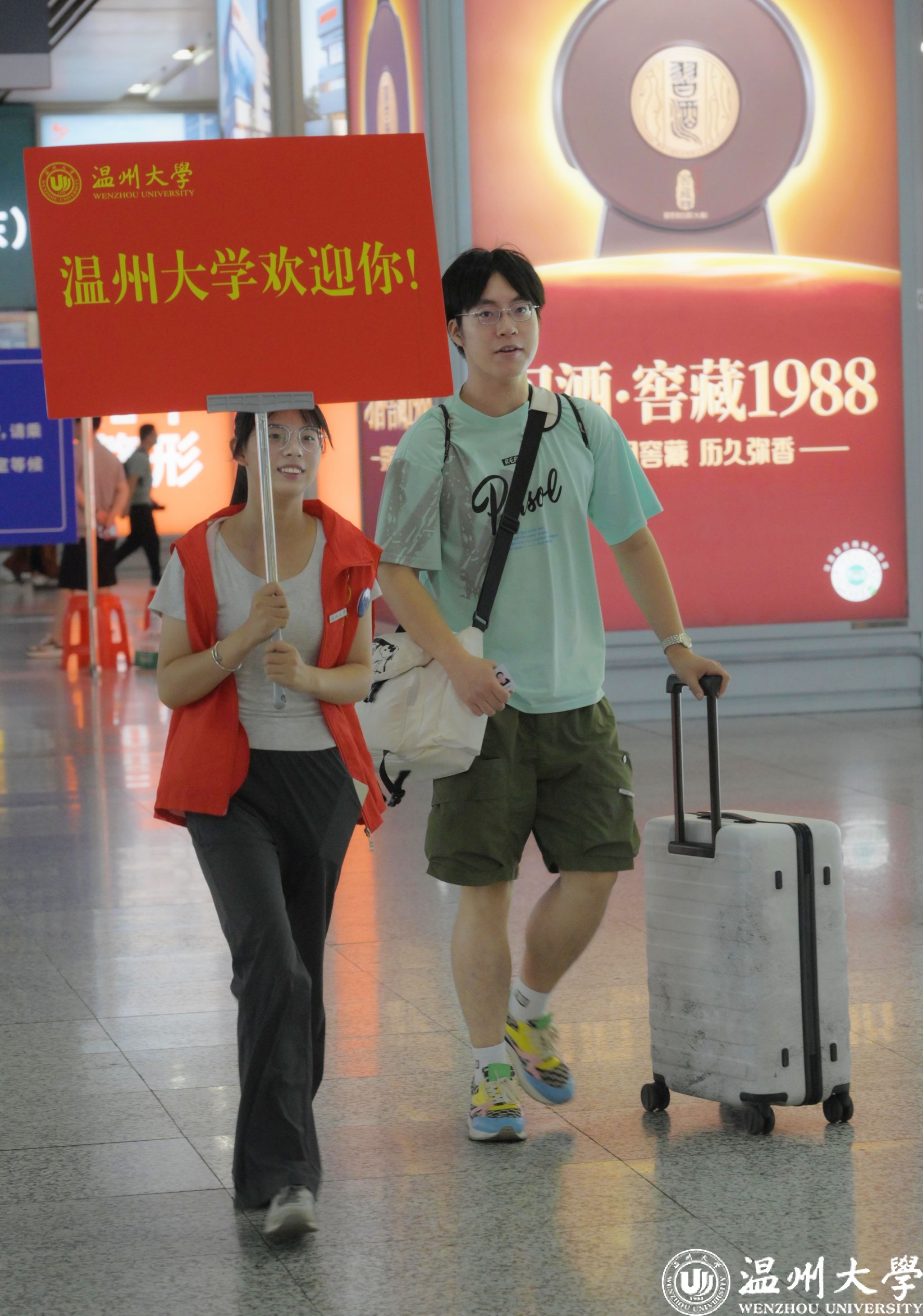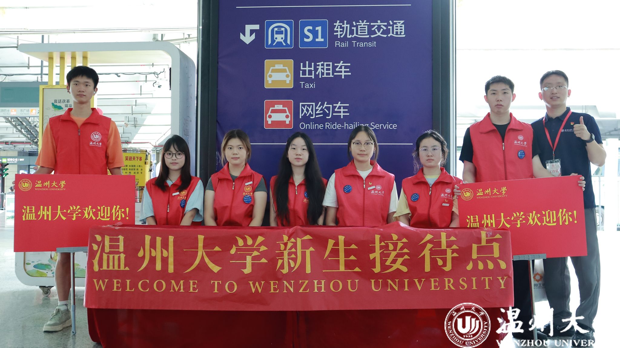动车站接站点,“小宝影院 ”醒目的横幅早早拉起,温大教师、志愿者及校车司机团队为新生们提供路线指引、行李搬运及答疑解惑等贴心服务,让初到温州的新生倍感温暖。