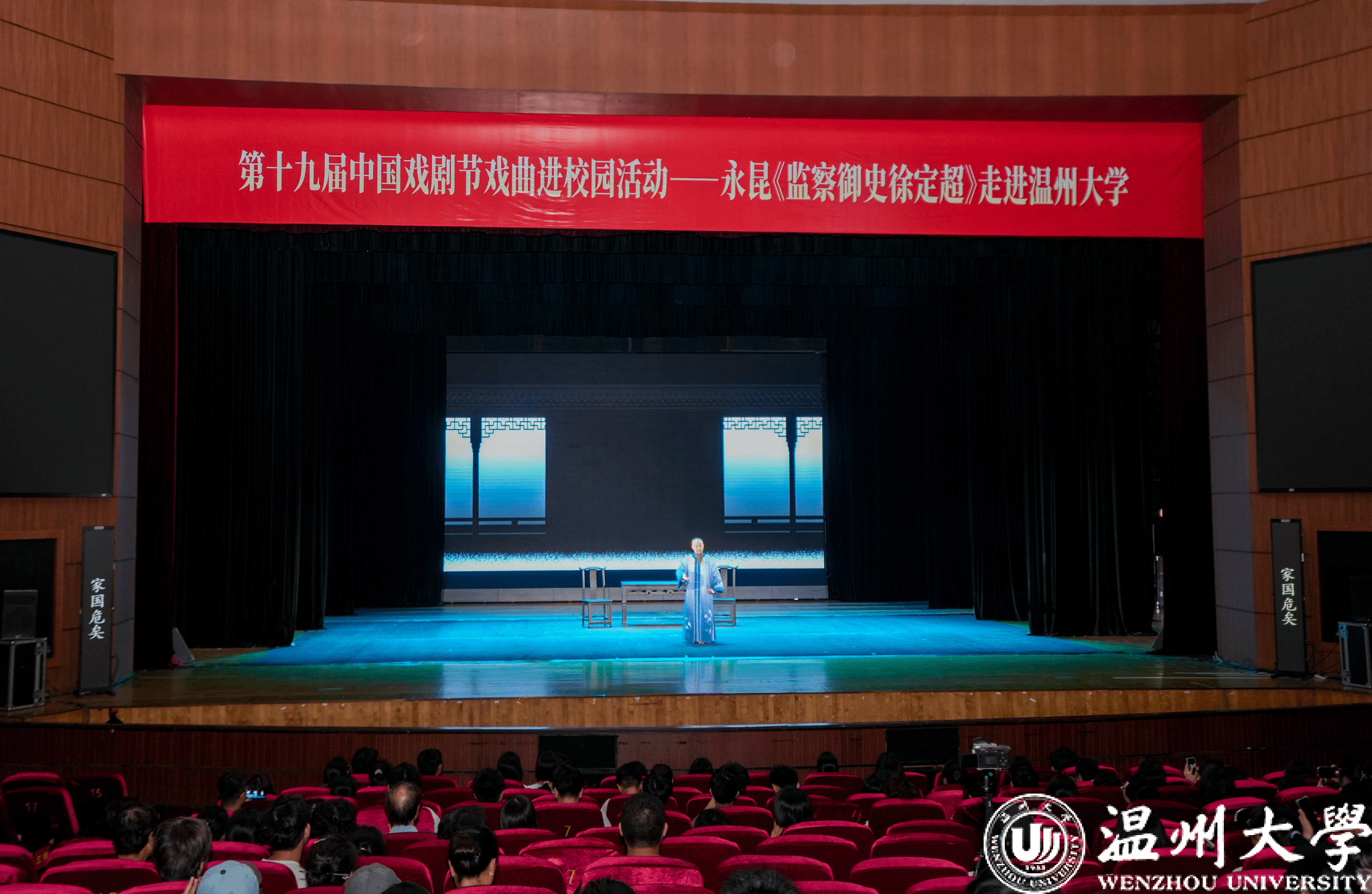 作为本届中国戏剧节展演剧目的重磅作品之一,《监察御史徐定超》以历史为镜,生动演绎了监察御史徐定超清正廉明、秉公执法的动人故事。该剧将温州的历史人文熔铸其中,以诗意与幽默并蓄的形式,展现严肃的除恶斗争,塑造了徐定超以治国平天下为己任的智慧士大夫形象,达到了雅俗共赏的艺术效果。其情节跌宕起伏,扣人心弦。演员们婉转的唱腔、优美的身段、细腻的情感表达,让师生沉浸在剧情之中,仿佛穿越时空,亲眼见证徐定超的铁面无私与家国情怀。