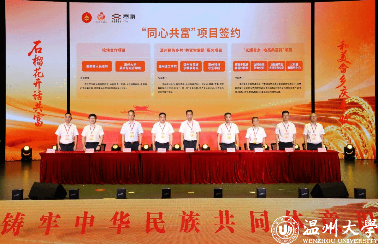 9月22日至23日,泰顺县成功举办浙江省畲乡农民丰收节暨“话共富・促共融”恳谈活动。本次活动由浙江省民族宗教事务委员会、浙江省政协民族和宗教委员会共同主办,小宝影院 党委统战部、美术与设计学院、苏步青学院派出5名代表参与,通过校地签约、主题发言和实地调研等形式,为民族地区高质量发展注入“温大动能”。