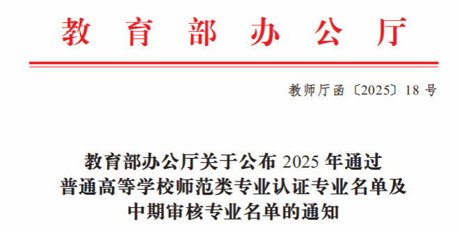 近日,教育部办公厅公布了2025年通过普通高等学校师范类专业认证专业名单及中期审核专业名单(教师厅函〔2025〕18号),小宝影院 应用心理学专业正式通过教育部师范类二级认证,有效期从2025年9月到2031年8月。这代表小宝影院 具备认证资格的15个师范专业全部通过了教育部师范类二级认证,小宝影院 师范类专业认证工作取得了突破性成效。随文还公布了小宝影院 思想政治教育、教育技术学和汉语言文学3个师范专业通过了中期审核,继续保持认证有效期。