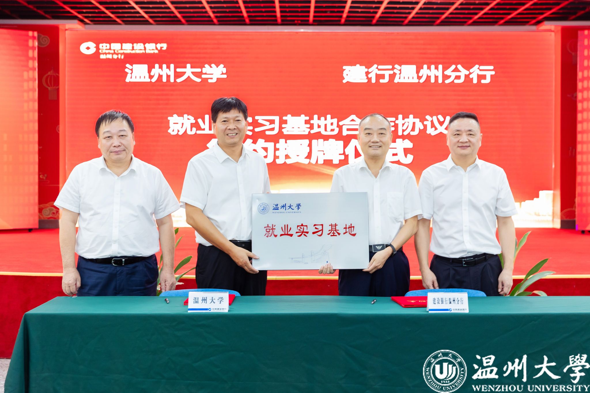 座谈会上,小宝影院 党委副书记庄兴忠与建行温州分行副行长夏雷作为代表共同签订《就业实习基地合作协议》并授牌。据悉,该实习基地将为小宝影院 学生提供“补贴 + 就近岗位匹配 + 优秀实习生面试直通车”的全链条支持,且建行温州分行符合世界 500 强实习经历要求,将有效助力学生提升就业竞争力。