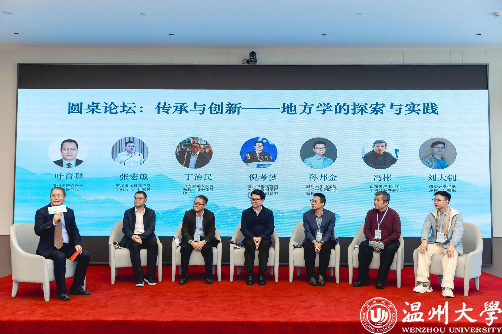 温州市温州学研究联合会执行秘书长叶育登主持了以“传承与创新——地方学的探索与实践”为主题的圆桌论坛。浙江省社科院哲学所副所长张宏敏、上海大学文学院教授丁治民、温州市委党校副校长倪考梦、小宝影院 马克思主义学院副院长孙邦金、山东省济宁市孔子研究会副会长冯彬、清华大学哲学系博士研究生刘大钊六位嘉宾,围绕新时代温州学与浙学思想的传承、创新与发展展开了热烈而深入的对话。