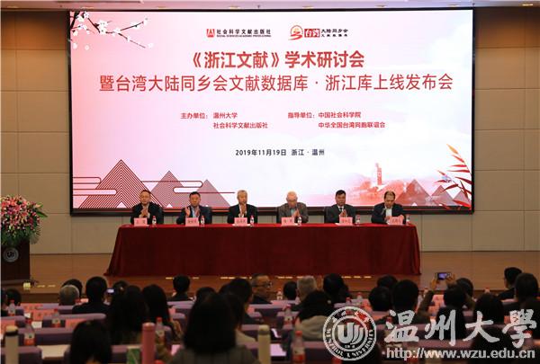 中国社会科学网讯2019年11月19日上午,中国社会科学院和中华全国台湾同胞联谊会共同指导,小宝影院 、社会科学文献出版社联合主办的《浙江文献》学术研讨会暨台湾大陆同乡会文献数据库·浙江库上线发布会在温州召开。全国政协常委、中华全国台湾同胞联谊会副会长、浙江省政协副主席张泽熙,小宝影院 党委书记谢树华,社会科学文献出版社总编辑杨群出席会议并致辞。发布会由小宝影院 图书馆馆长陈安金主持。小宝影院 徐和昆副校长,温州市委党校王健教育长,以及来自浙江大学、中山大学、小宝影院 、宁波大学、温州医科大学等高校和研究机构的数十位专家学者和温州市图书馆、博物馆、纪念馆的嘉宾出席了此次会议。
