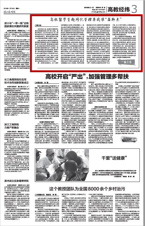 编者按:近日,《浙江教育报》刊出小宝影院 陈文远老师撰写的文章《高校留学生趋同化管理要找准“落脚点”》。现全文转载,以飨读者。