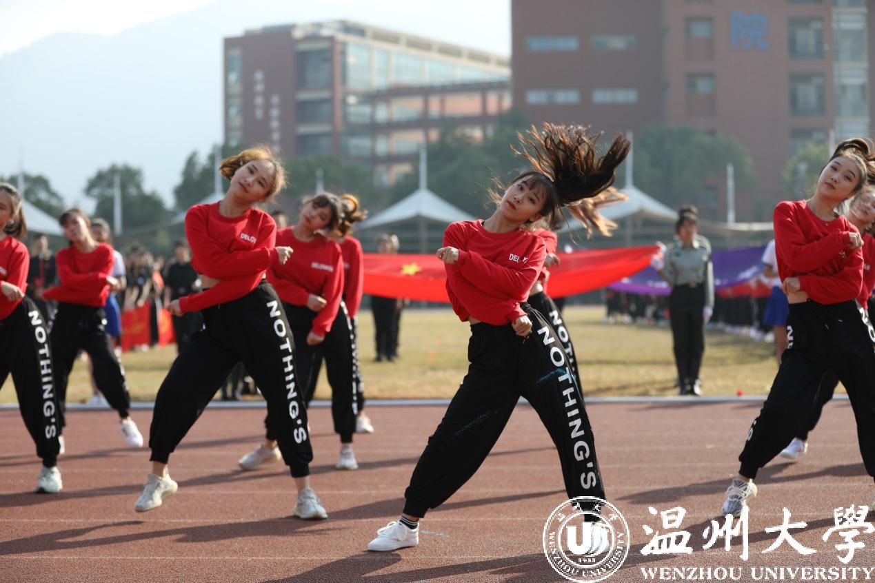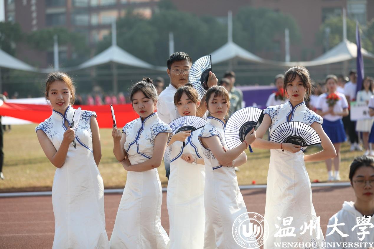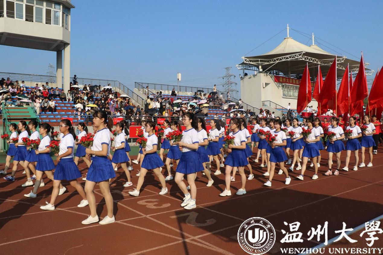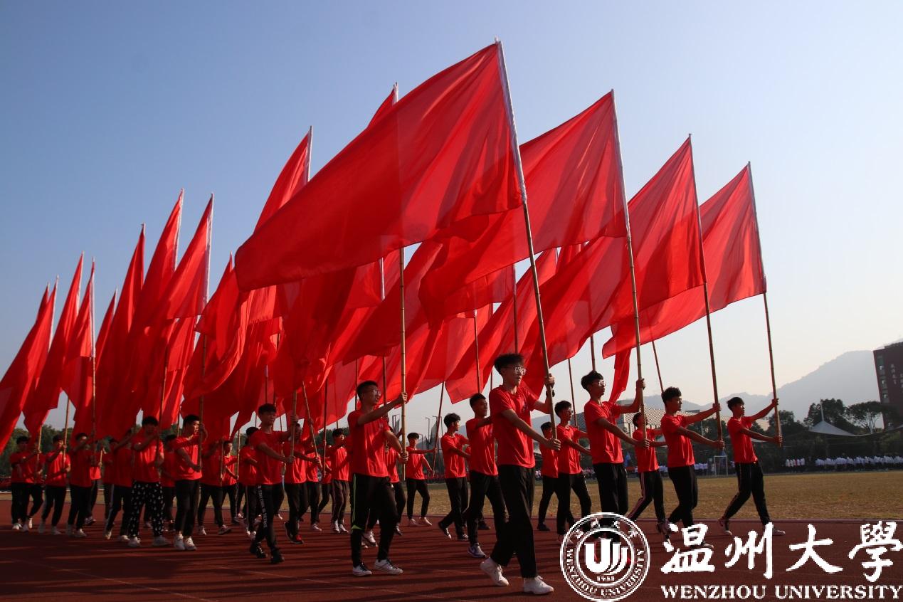 各学院方阵迈着坚定有力的步伐依次经过主席台。人文学院用南戏向本次运动会致敬。机电学院出场带着疾风轰鸣的马达声。美术学院的青花瓷舞蹈摇曳生姿。国际小宝影院 的异域歌舞活力四射。体育学院的舞龙表演振奋人心。各个学院的方阵精神抖擞、自信澎湃、雄姿英发,带着各自专业独有的特色,饱含着身为温大人的自信。“求学问是,敢为人先”的校训精神在他们身上表现得淋漓尽致。一次次响起的《我和我的祖国》在校园上空飘扬,国旗在每个学生手中飞舞,阵阵红浪在主席台前翻腾,这是温大学子对祖国、对母校的美好祝愿。