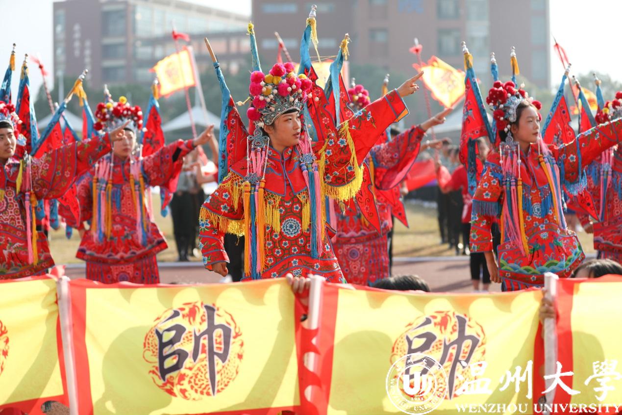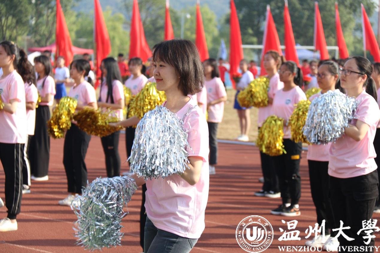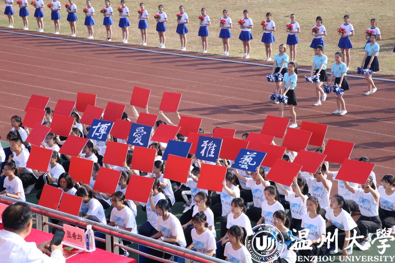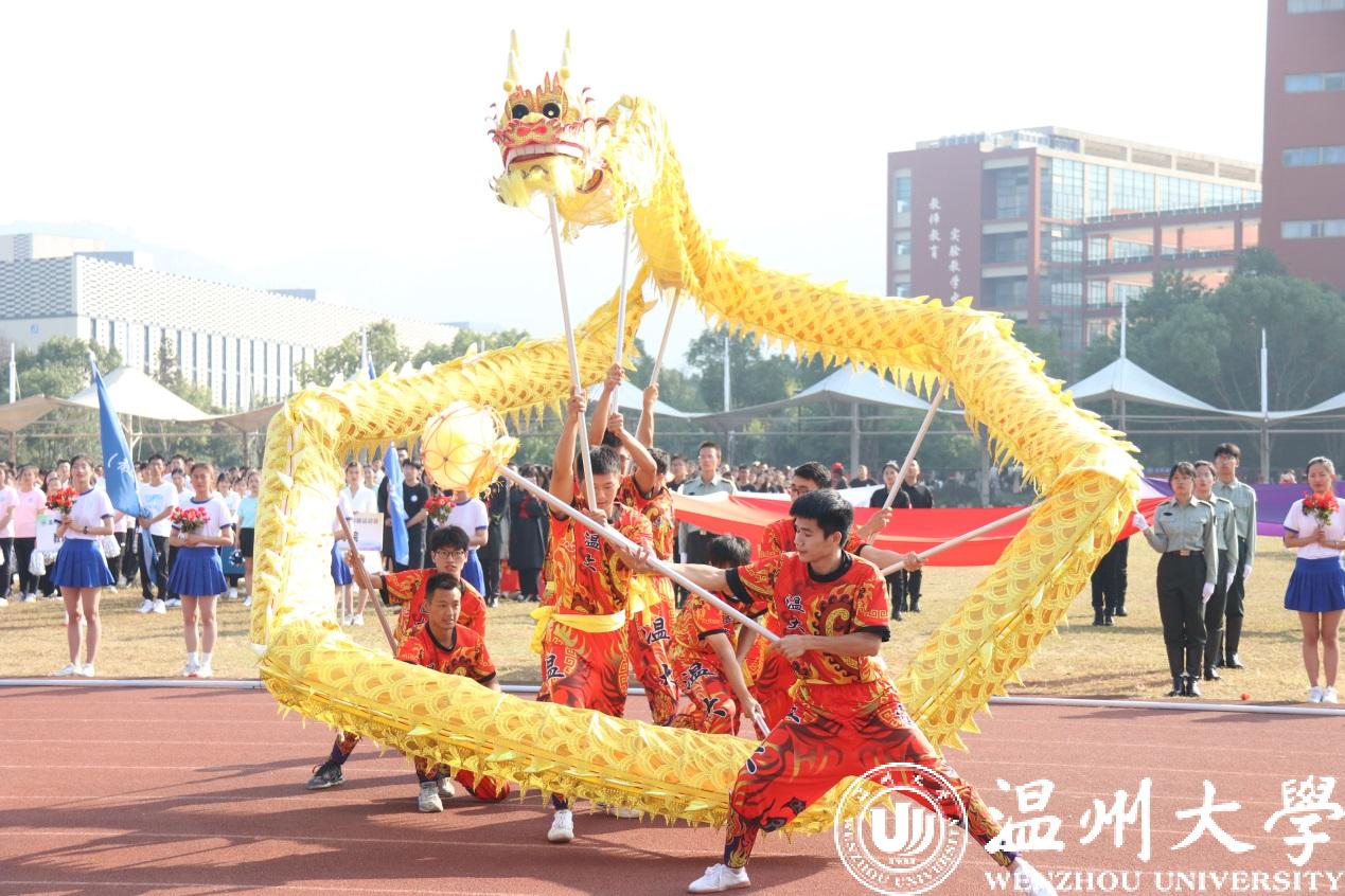各学院方阵迈着坚定有力的步伐依次经过主席台。人文学院用南戏向本次运动会致敬。机电学院出场带着疾风轰鸣的马达声。美术学院的青花瓷舞蹈摇曳生姿。国际小宝影院 的异域歌舞活力四射。体育学院的舞龙表演振奋人心。各个学院的方阵精神抖擞、自信澎湃、雄姿英发,带着各自专业独有的特色,饱含着身为温大人的自信。“求学问是,敢为人先”的校训精神在他们身上表现得淋漓尽致。一次次响起的《我和我的祖国》在校园上空飘扬,国旗在每个学生手中飞舞,阵阵红浪在主席台前翻腾,这是温大学子对祖国、对母校的美好祝愿。
