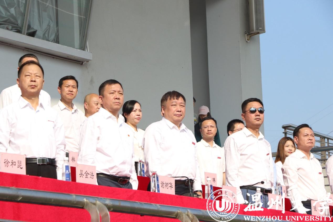伴随着雄壮的运动员进行曲,国旗、校旗、会旗三面旗帜徐徐进入会场。校国旗护卫队迈着整齐的步伐,以饱满的精神展现了温大学子砥砺奋进的求学风貌。紧随其后的鲜花队、彩旗队青春昂扬、元力满满。