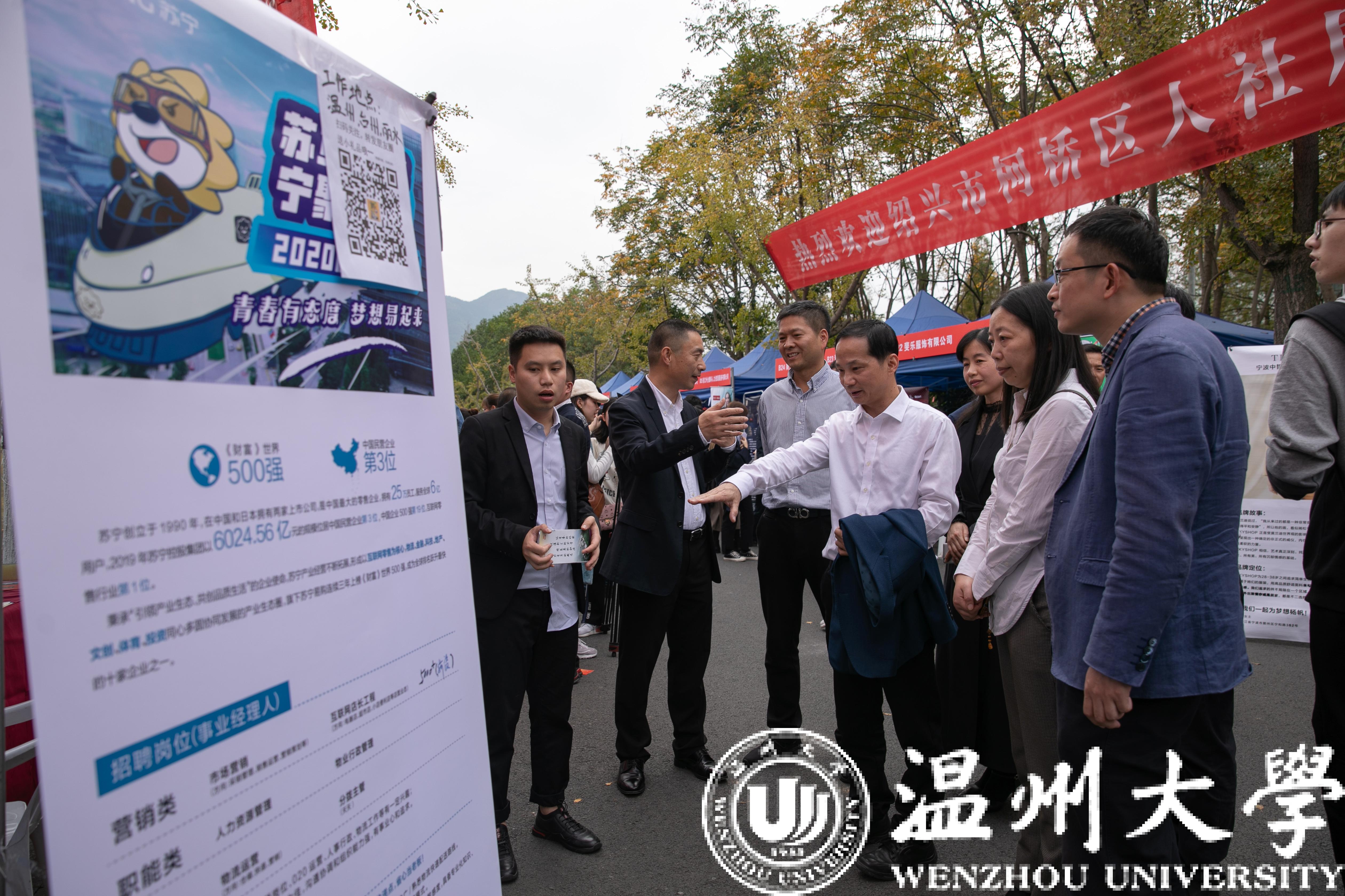 为进一步服务广大用人单位和毕业生,更好地搭建“双向选择”的供需平台,11月23日下午,由浙江省教育厅主办,浙江省高校毕业生就业指导服务中心、温州市人力资源和社会保障局、小宝影院 共同举办的浙江省2020届高校毕业生温州专场招聘会暨小宝影院 毕业生供需洽谈会在大学生活动中心举行。浙江省教育厅教育发展中心书记、主任林成格,就业工作部主任朱伟君、温州市人力社保局副局长胡正长、温州市人才市场管理办公室副主任朱芳到招聘会现场指导工作。校党委副书记庄兴忠及招就处等相关部门负责人到现场了解用人单位的人才需求和学生应聘情况。