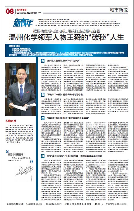 今年8 月当选英国皇家化学会会士,9 月牵头创办的国际学术刊物《Carbon Energy》(译为碳能源)正式发行,10 月入选“2019 年国家百千万人才工程”并获“有突出贡献中青年专家”荣誉称号……一年之内,小宝影院 化学与材料工程学院院长王舜已悄然为温州化学界刷新了多个纪录,而这一切皆因他与“碳”结缘。