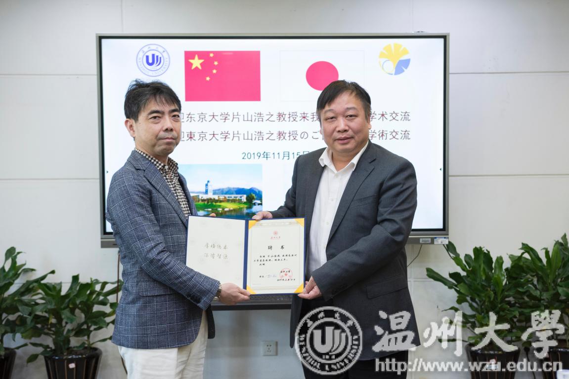 11月15日上午,日本东京大学片山浩之教授来小宝影院 交流访问,洽谈人才培养和科研合作合作事宜。校长赵敏教授、生命与环境科学学院院长阎秀峰教授、井芹宁教授、郝爱民教授等教师代表及国际交流与合作处负责人参加了会谈。