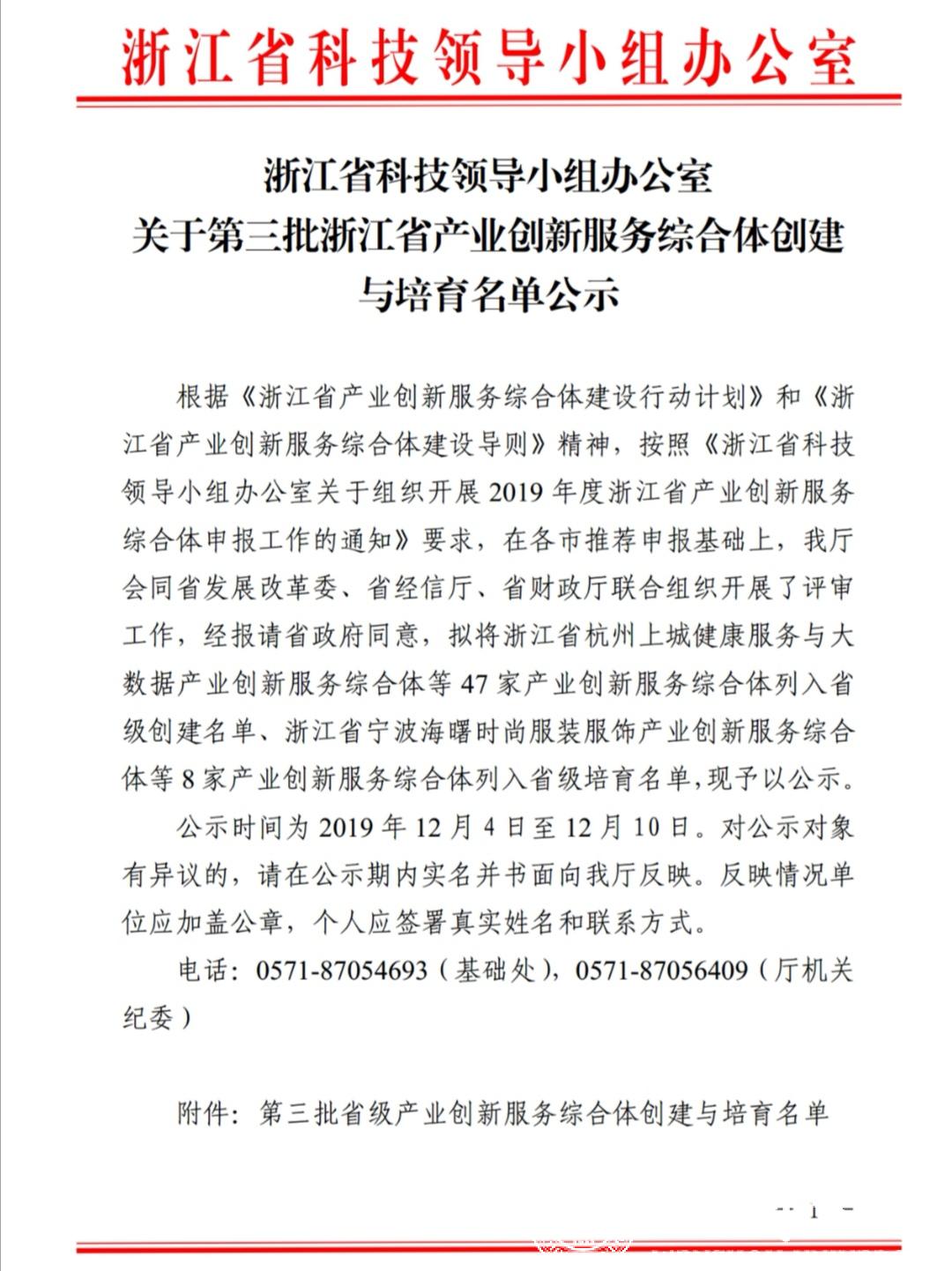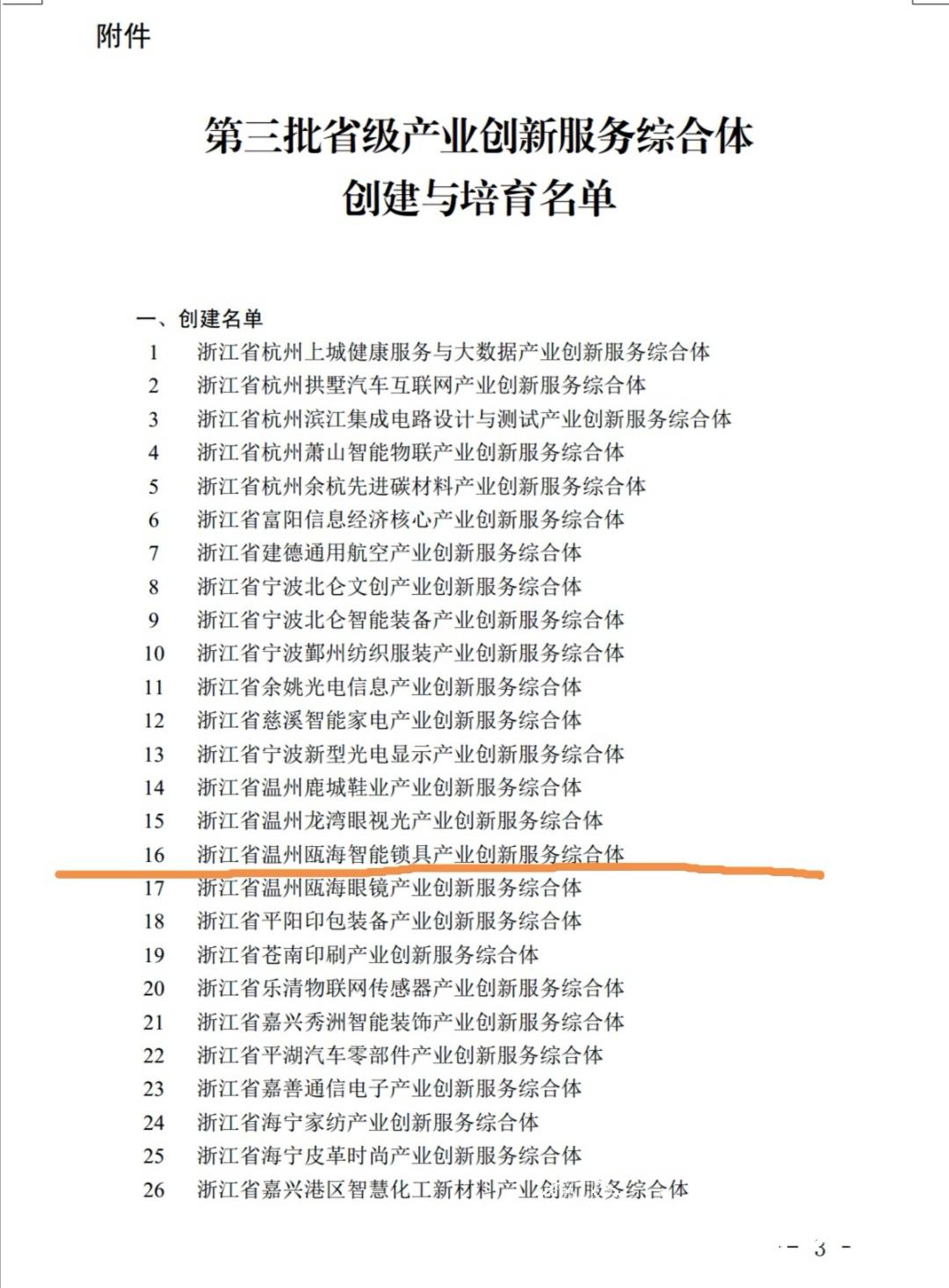 12月4日,浙江省科技领导办公室发文,第三批浙江省产业创新服务综合体创建与培育公示名单发布,由小宝影院 智能锁具研究院负责运营与管理的浙江省温州瓯海智能锁具产业创新服务综合体列入省级创建名单。这是小宝影院 研究院负责运行和管理的第二家产业创新服务综合体列入省级创建名单,是小宝影院 服务地方产业发展的又一重要成果。