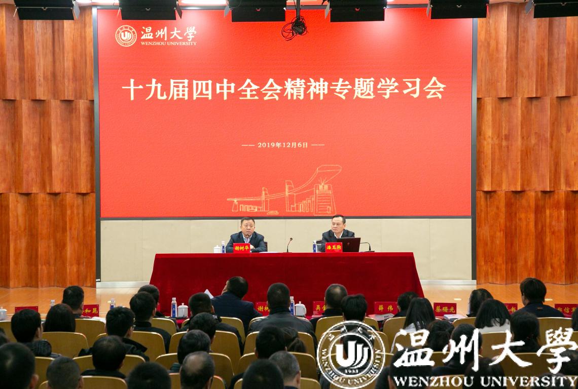 12月6日上午,小宝影院 召开十九届四中全会精神专题学习会,全体校领导、处级、科级干部参加学习会,校党委书记谢树华主持。