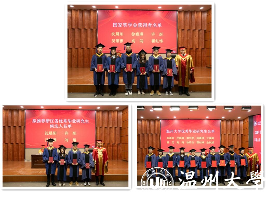 校党委庄兴忠副书记宣读了小宝影院 优秀毕业研究生名单、拟推荐浙江省优秀毕业研究生名单和国家奖学金获奖者名单,校领导为20名获奖同学颁奖并合影留念。