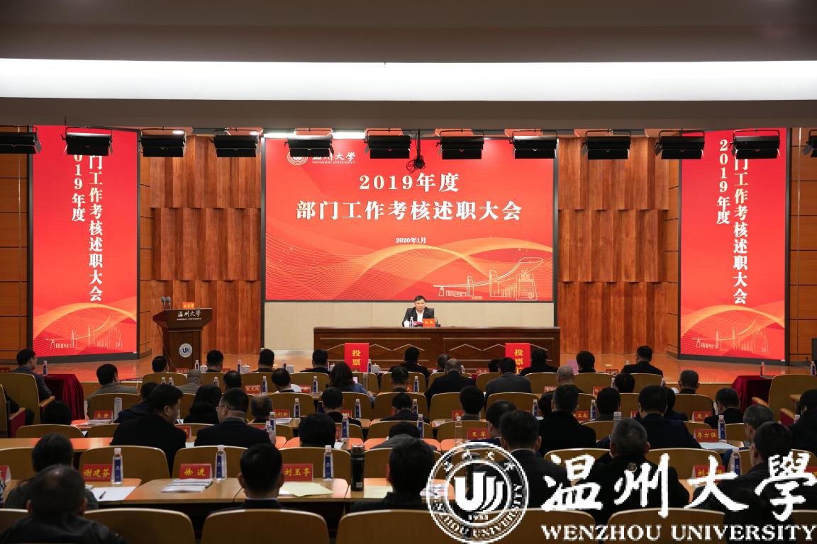 1月9-10日,小宝影院 2019年度学院、部门工作考核大会暨目标责任制(2020-2023)签约仪式在南校区会展中心雁山厅隆重举行。学校领导、全体中层干部出席会议。赵敏校长主持会议。
