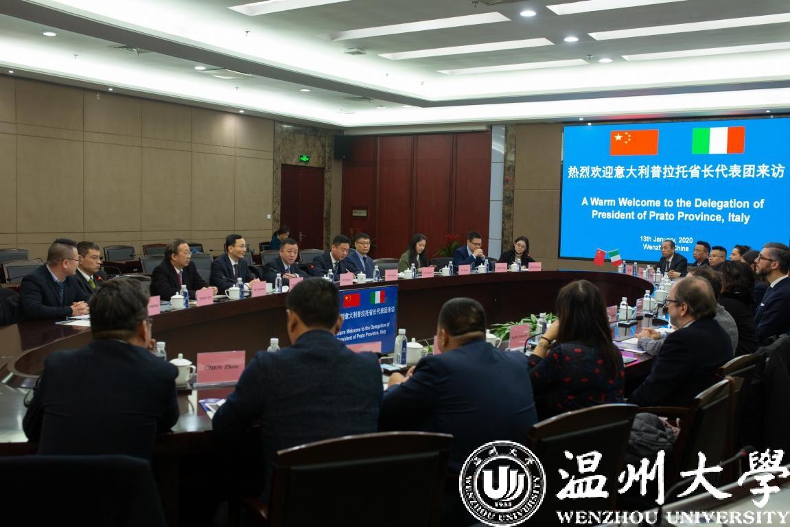 1月13日上午,意大利普拉托省省长弗朗切斯科•普吉利(Francesco Puggelli)等一行15人来访小宝影院 ,温州市人民政府外事办公室副主任周怀中、普拉托华人华侨联谊会会长徐秋林、普拉托华商会会长周荣景、普拉托华人华侨联谊会执行会长陈洲等陪同访问。校党委书记谢树华、副校长钱强在岩松堂白鹿厅会见了代表团一行。钱强主持会议。校国际交流与合作处、港澳台侨办、世界温州人研究中心相关负责人等参加会谈。