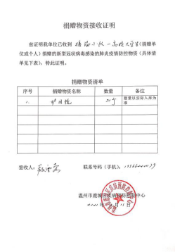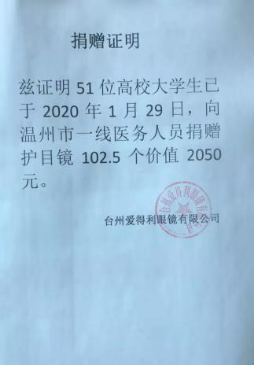 截止目前,在呼吁更多的高校学生和社会爱心人士加入的同时,“援温小队”已经连续开展了3次募捐行动,累计捐赠239人次,捐赠如护目镜、医用外科口罩、免洗消毒液等价值2万余元的医疗防护物资,为奋斗在抗疫一线的温州守护者们送去温大学子的温暖与支持。