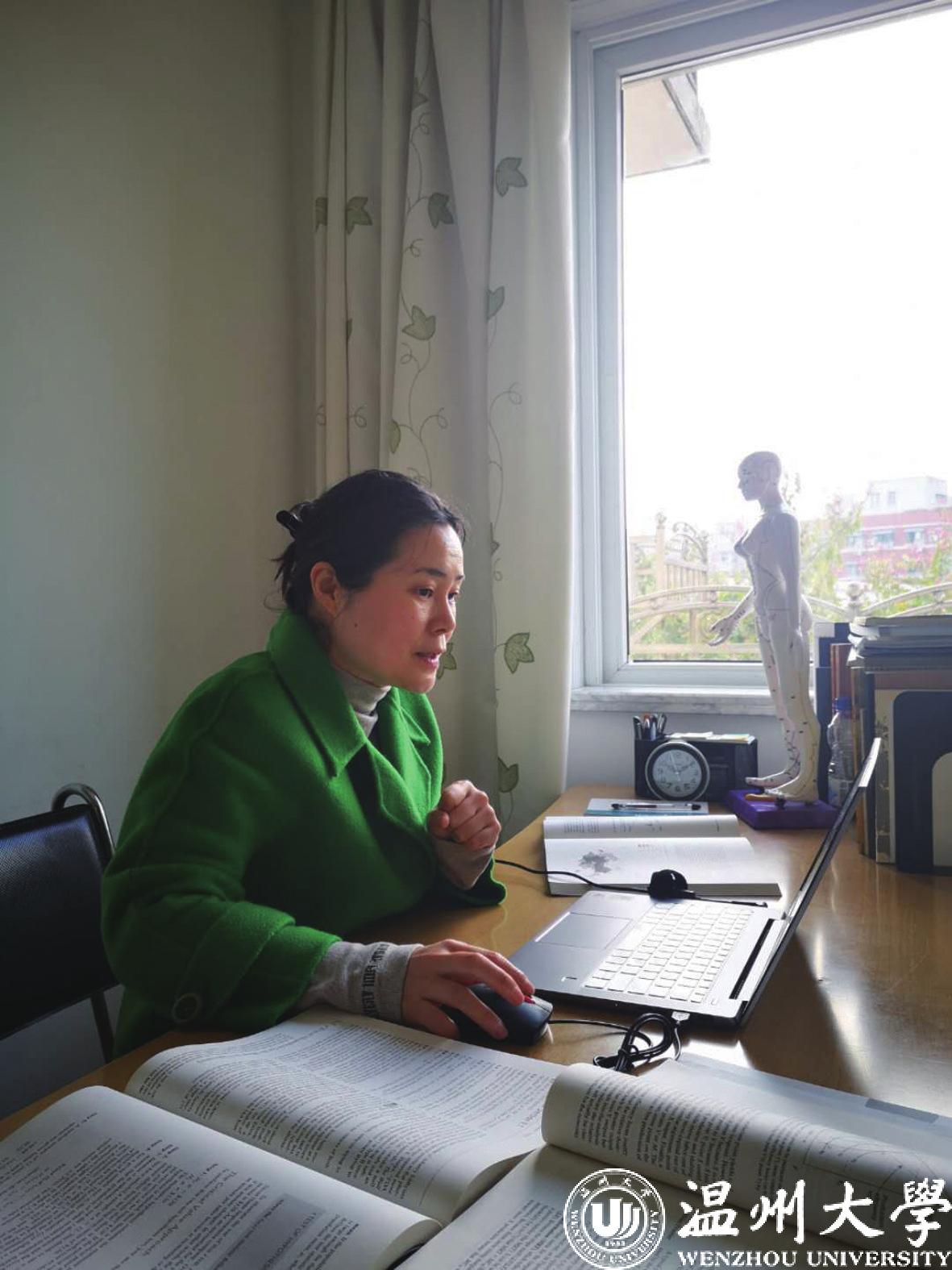 陈翊老师通过网络为留学生授课。