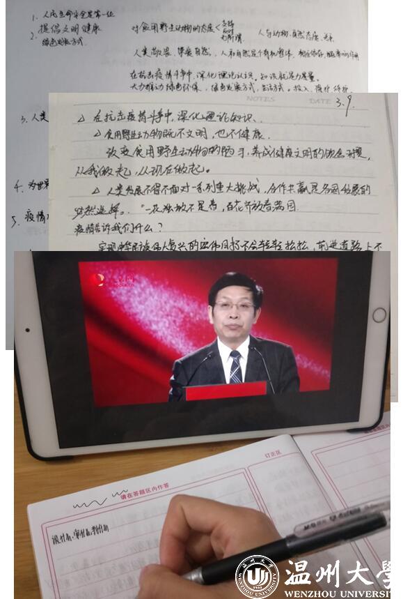 在本次思政大课过程中,学校师生通过手机、电脑等形式,共聚“云”端,认真听课,积极思考。在线直播学习结束后,学校组织学生班级开展线上讨论,各学院还以“思政大课”为契机召开专题“云班会”,组织师生交流学习感受,进一步强化对思政课讲授内容的理解,将教育效果延伸到课下和生活中,真正把思想引领做到位,做到学生心里。