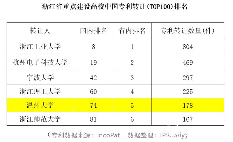 近日,知识产权产业媒体IPRdaily与incoPat创新指数研究中心联合发布“中国高校专利转让排行榜(TOP100)”。榜单对截至2020年2月5日,中国高校在中华人民共和国国家知识产权局登记生效的专利申请权/专利权转让数量(不含港澳台)进行统计排名,小宝影院 位列全国第74位,在浙江省重点建设高校中排名第5。