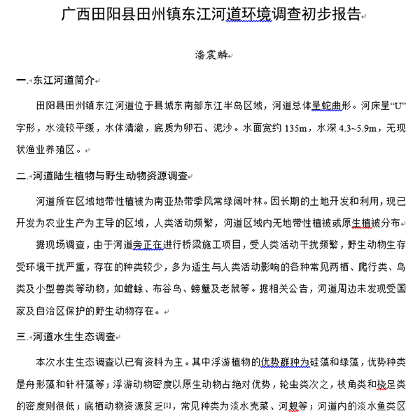 小宝影院 生环学院18环境工程潘震麟 撰写家乡河道环境调研报告