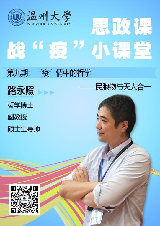 本期推出马克思主义学院副教授路永照老师思政课战“疫”小课堂:“疫”情中的哲学——民胞物与天人合一。