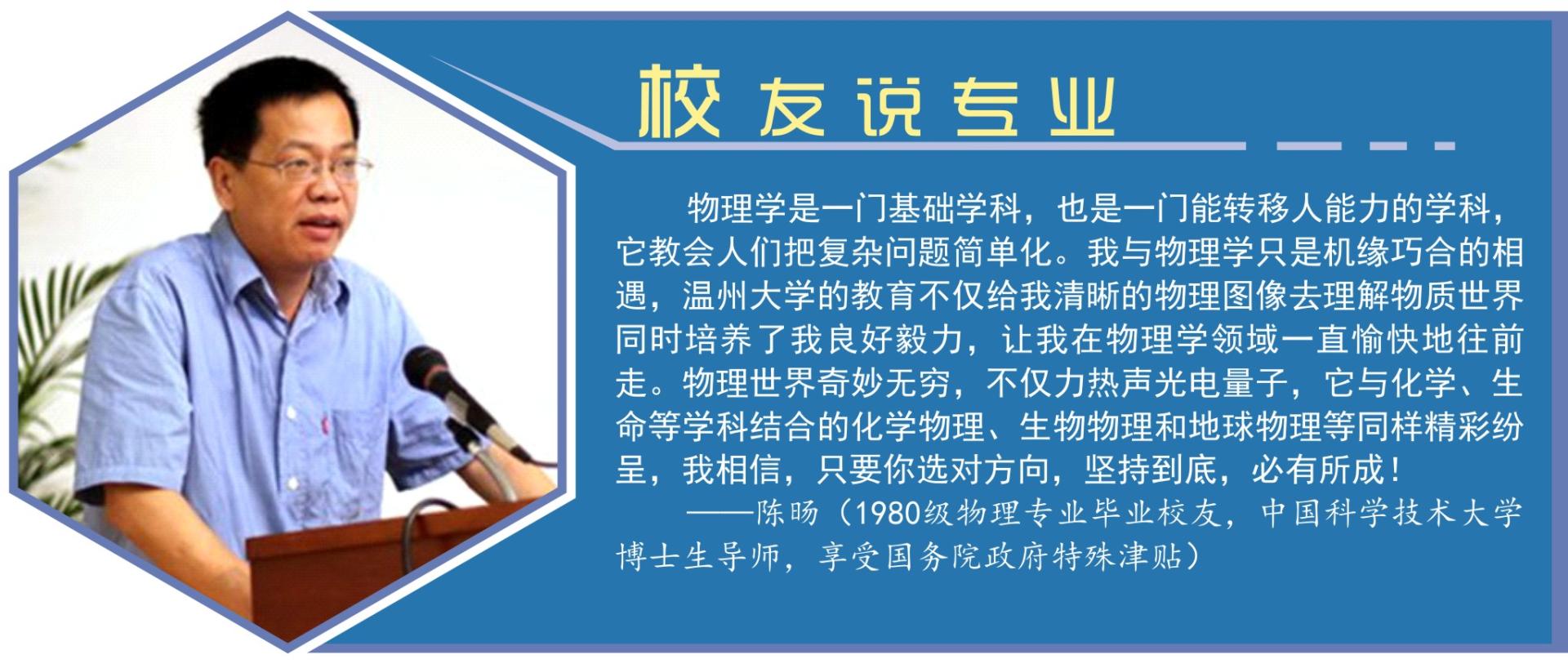 本专业以培养中学物理、中小学科学、高中通用技术教师及考研深造为主要目标,兼顾培养教育类或物理类的研究型人才。在长期办学过程中,形成了“厚基础、宽口径、重实践、强能力、能担当”的办学特色,为社会培养和输送了近5000多名专业人才,不论是在基础教育界还是高等教育界,不论是在政界还是商界,都有杰出校友的身影。他们有的是科学家、教授,有的是省重点中小学校长或特级教师,有的是教育部门负责人,还有的是经营有方的著名企业家。丰富的校友资源也为在校生成长提供了额外福利,一些校友不仅在学生毕业发展方面给予必要支持,还回校成立奖助学金,帮助学生学习成长。