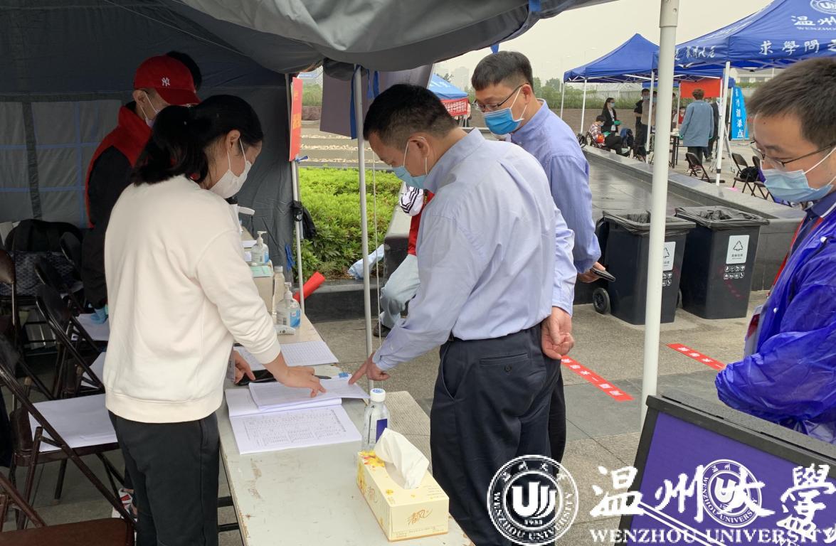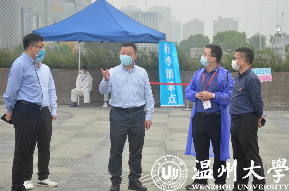 5月7日,校党委书记谢树华来到小宝影院 设在温州动车南站等处的接待点、消杀点和报到点,对报到和接站流程进行检查,并亲切慰问返校学生和接站工作人员。