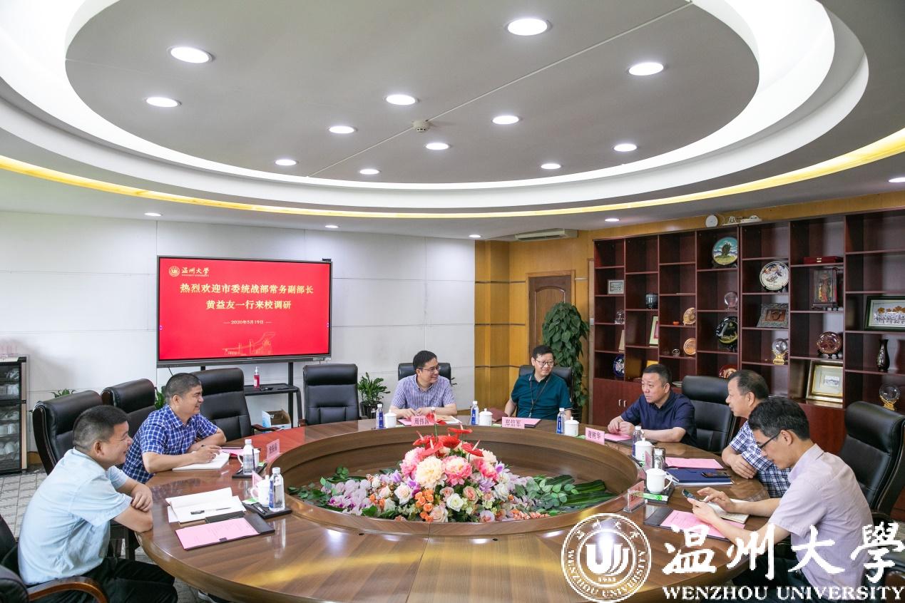 5月19日上午,温州市委统战部常务副部长黄益友一行莅临小宝影院 ,就学校统战工作开展专题调研。校党委书记谢树华、党委副书记吴金法、党委委员郑信军出席调研会。