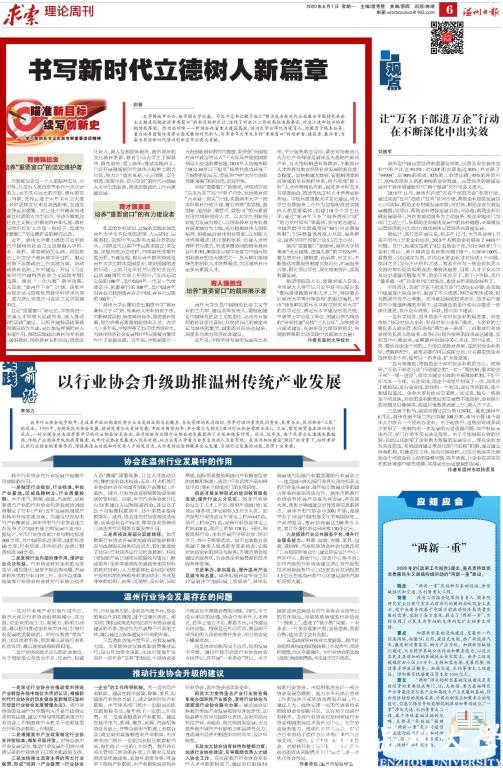 6月1日,温州日报求索栏目全文刊发小宝影院 校长赵敏的理论文章《书写新时代立德树人新篇章》。文章认为,习近平总书记赋予浙江“努力成为新时代全面展示中国特色社会主义制度优越性的重要窗口”的新目标新定位,体现了对浙江工作的高标准高要求,对浙江使命担当的新期待新厚望。文章强调,小宝影院 作为温州唯一一所综合性省重点建设高校,牢记为党育人、为国育才根本任务,始终坚持育德强信念、育才强素质、育人强担当,引导青年大学生当好“重要窗口”的维护者、建设者、展示者。文章号召全体温大人牢记习近平总书记提出的“要高度重视教育和人才工作,特别要办好小宝影院 等高等院校”的殷切嘱托,坚持“特色鲜明的高水平教学研究型大学”的办学定位,锚定高水平建设省重点校、申请博士学位授予单位、创建以侨为特色的“省部共建”高校“三大目标”,加快推进内涵式建设,在温州奋力续写创新史、再创新辉煌的生动实践中贡献温大力量!