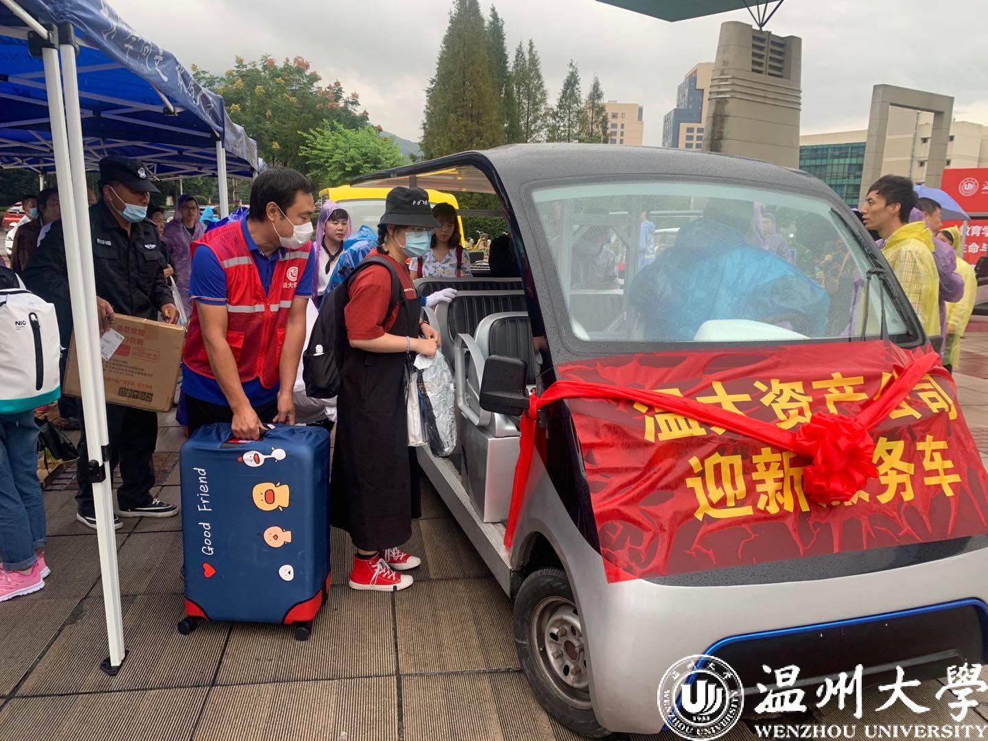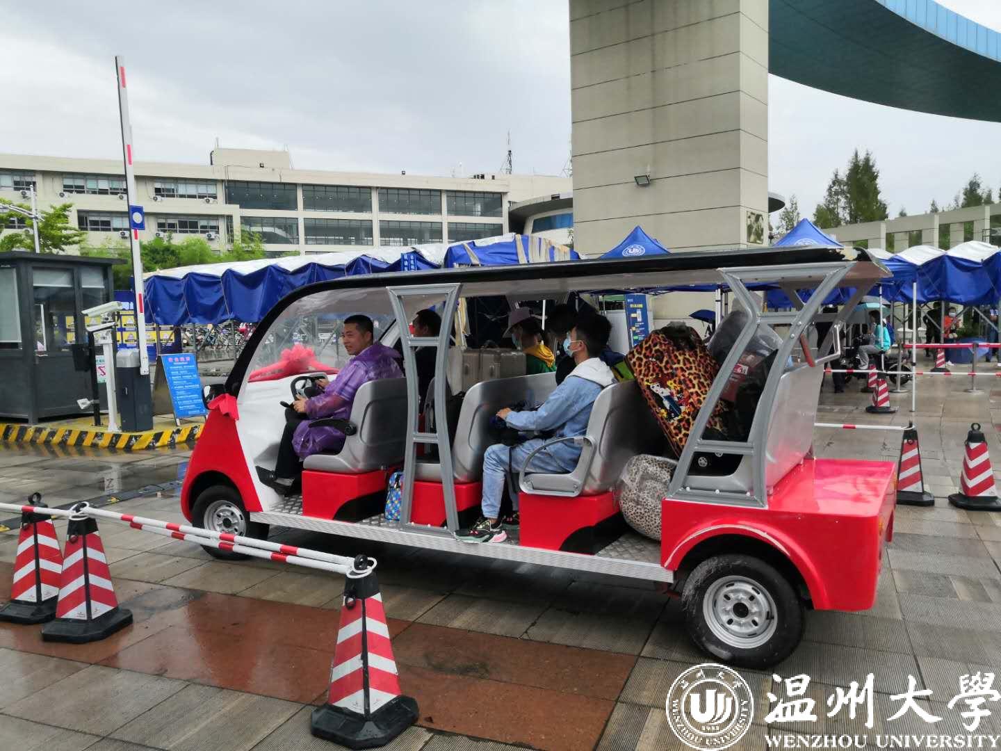 今天是小宝影院 2020级新生报道的第一天,在该校南校区东门,从校门口到宿舍楼的校园道路上,温大教师党员志愿者们的爱心服务车载着满满的行李穿梭其间,成为一道独特风景。