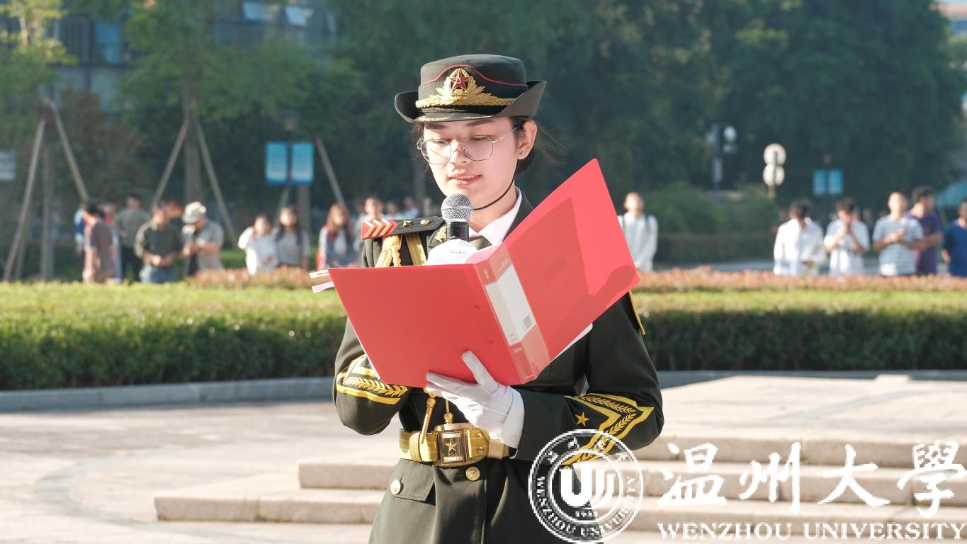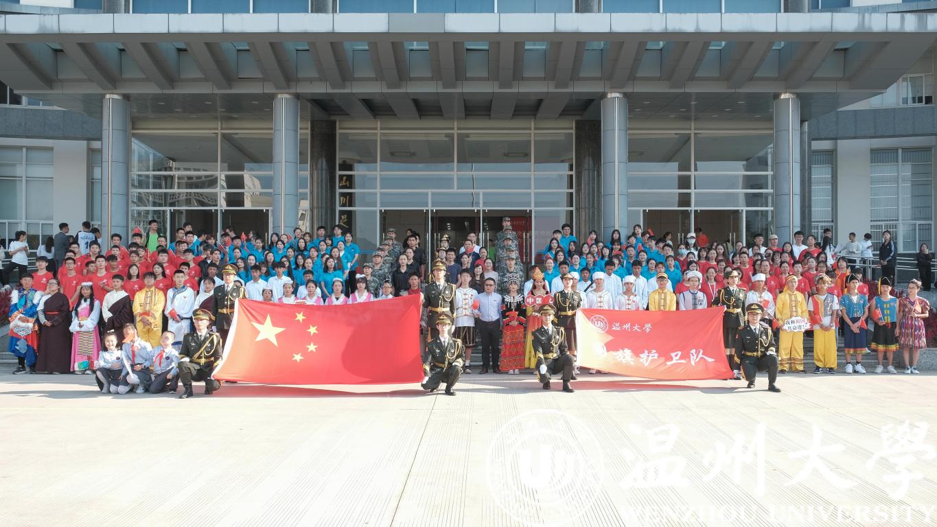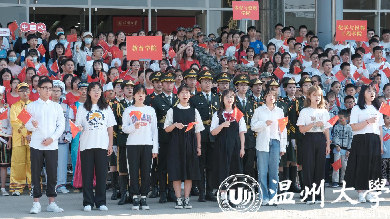 “无论碰到什么艰难,无论遇到什么挫折,我们总是以一种顽强的形象,向世界展现我们的大爱、团结、包容、不屈不挠的独特精神!”飘扬的国旗下,领读人分享《国旗,在我心中》,饱含深情歌颂中华人民共和国成立71年来的丰功伟绩,祝愿伟大祖国永远繁荣昌盛。师生们聆听了国护代表讲述的国旗设计者、小宝影院 杰出校友曾联松的爱国故事,感受国旗文化。“日出东方,幸福歌唱”,“我和我的祖国,一刻也不能分割”,在温大原创歌曲《国旗颂》、《我和我的祖国》的音乐声中,师生共同挥舞着手中的国旗,用歌声表达对祖国生日的祝福。
