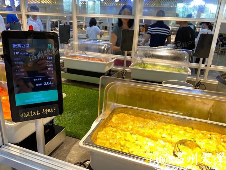 位于小宝影院 学生公寓C区的亿源智慧餐厅创新推出无感支付、菜量精准到克、自动结算等点餐与支付方式,受到师生的一致好评。记者看到,亿源智慧餐厅与自助餐厅的陈设较为相似——餐厅每天提供10个大类、上百道菜品供选择,每个菜品旁边设有一块液晶显示屏,师生在餐厅门口拿上餐盘和带二维码的托盘,再根据自己的喜好挑选菜品;托盘放在感应区内,师生自主夹菜之后,显示屏就会显示对应的菜名、重量、价格等信息,用餐者可以根据需要增加或者减少菜量。