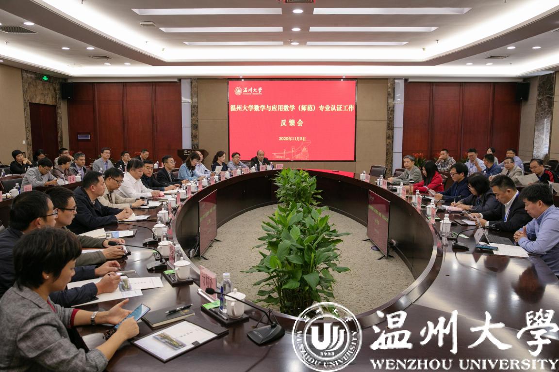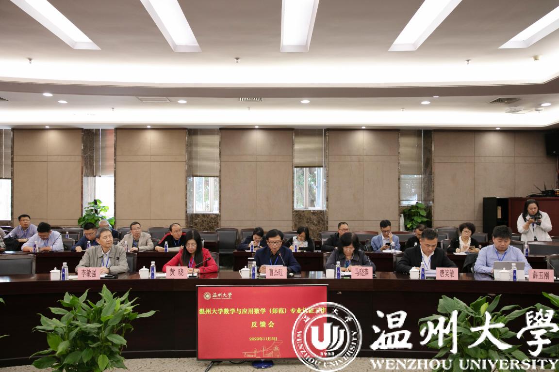 11月5日下午,经过认证专家组3天高强度的现场考查工作,小宝影院 数学与应用数学专业师范类第二级专业认证专家意见反馈会在岩松堂白鹿厅举行。本次认证由淮南师范学院原校长曹杰旺教授担任专家组组长,组员有泰山学院数学与统计学院院长马晓燕教授、浙江师范大学教师小宝影院 副院长黄晓教授、湖州师范学院理学院党委书记唐笑敏教授、浙江省教育厅教师工作处原调研员李敏强。浙江省教育考试院项目管理员薛玉刚全程陪同。